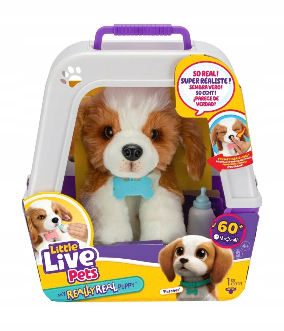 Патчі має м'яке хутро, рухомий повіки та важкі лапи, що робить його схожим на справжнього цуценя. Коли ти погладиш його, він моргає і видає радісні звуки. Акуратно натисніть на рот, і він нюхає вашу руку. Маленькі живі домашні тварини реагують на кожен ваш дотик і нададуть вам багато годин задоволення!