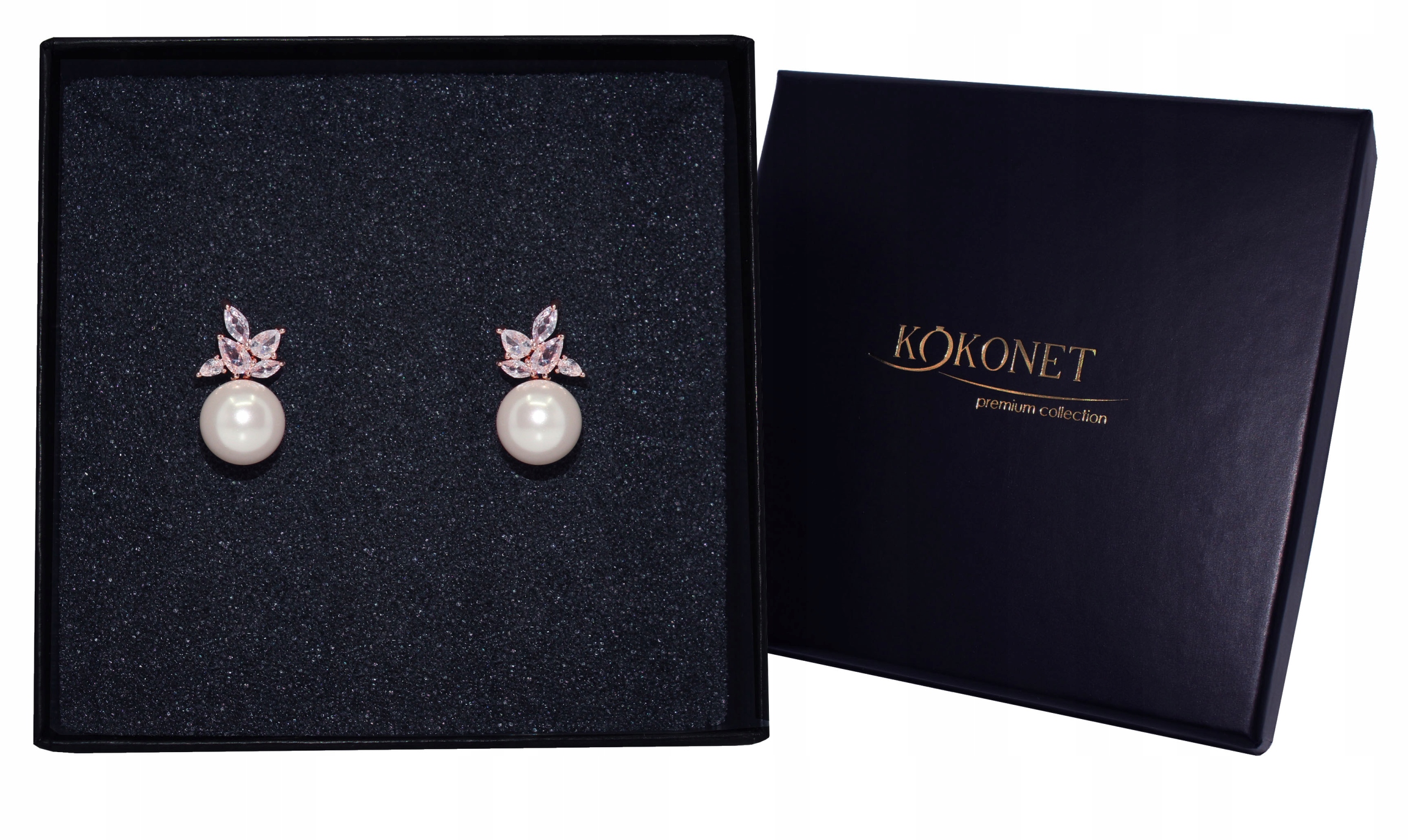 Ще одна класична пропозиція маленьких весільних сережок у поєднанні вишуканих перлин із казковим сяйвом кристалів. Мінімалістична форма з додаванням блиску огранених цирконів виглядає приголомшливо. Рамка з рожевого золота зігріє ваш весільний образ.