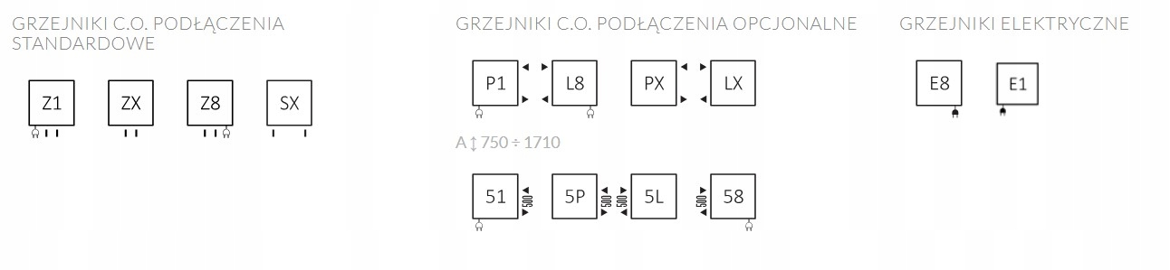але можна також радіатор з іншим підключенням бути зроблено - з'єднання доступні нижче - виберіть під замовлення