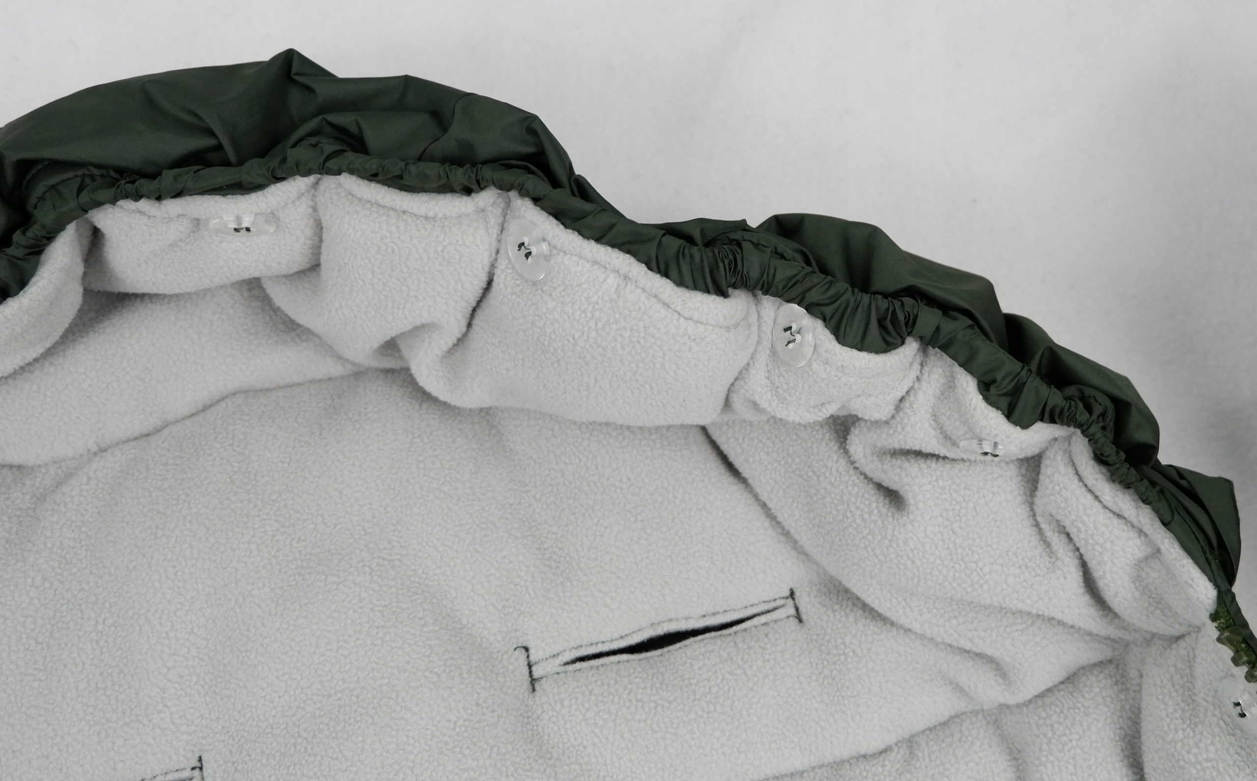 теплий і м'який спальний мішок для візки, автокрісла, гондола, сани. Він розстебнутий все довжиною на дві частини. Можна поставити верхню панель і закріпити її на преси - потім він досягає дитини, наприклад, до пахв, а не під підборіддям. Хороший фліс всередині, на задній частині спальних мішків анти -ковзання, вирізання для ременів. Вгорі вкладка, застосована до візки, або на задній частині санок, яка допомагає підтримувати стабільність спального мішка