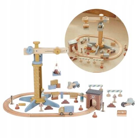 Набір містить фігурки робітників, транспортних засобів та будівельних елементів, що дозволяє створювати великі ігрові сценарії та розвивати дитячу уяву. Кран сумісний із поїздом Little Dutch XL (100 штук), тож ви можете створити ще більший і реалістичніший будівельний майданчик.