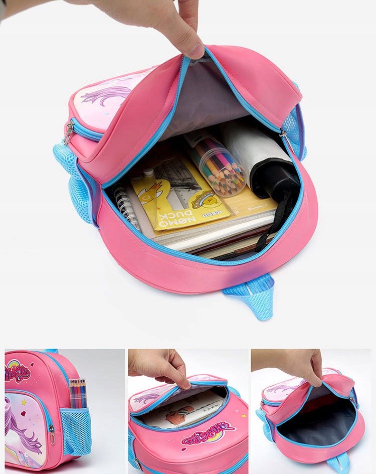 виготовлений з м'якого, приємного на дотик і дихаючого матеріалу з підвищеною стійкістю до вологи. Має дві бічні кишені, одну велику передню кишеню та широкі, регульовані та м’які лямки. Блискавки з ручками. Хороша якість виготовлення та використаних матеріалів, а також приємний зовнішній вигляд гарантують задоволення дитини.