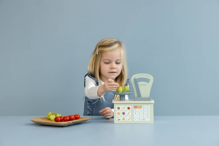 Іграшкові ваги чудово підходять не лише для удаваної гри, але й допомагають розвивати соціальні та моторичні навички і фантазії.Твоя малеча. Веселощі чудово доповнить набір з обробною дошкою з фруктами або овочами, дерев'яною касою або дерев'яною кухнею від Little Dutch, доступний на Allegro в нашому магазині. Чудова ідея подарунка для трирічної дитини.