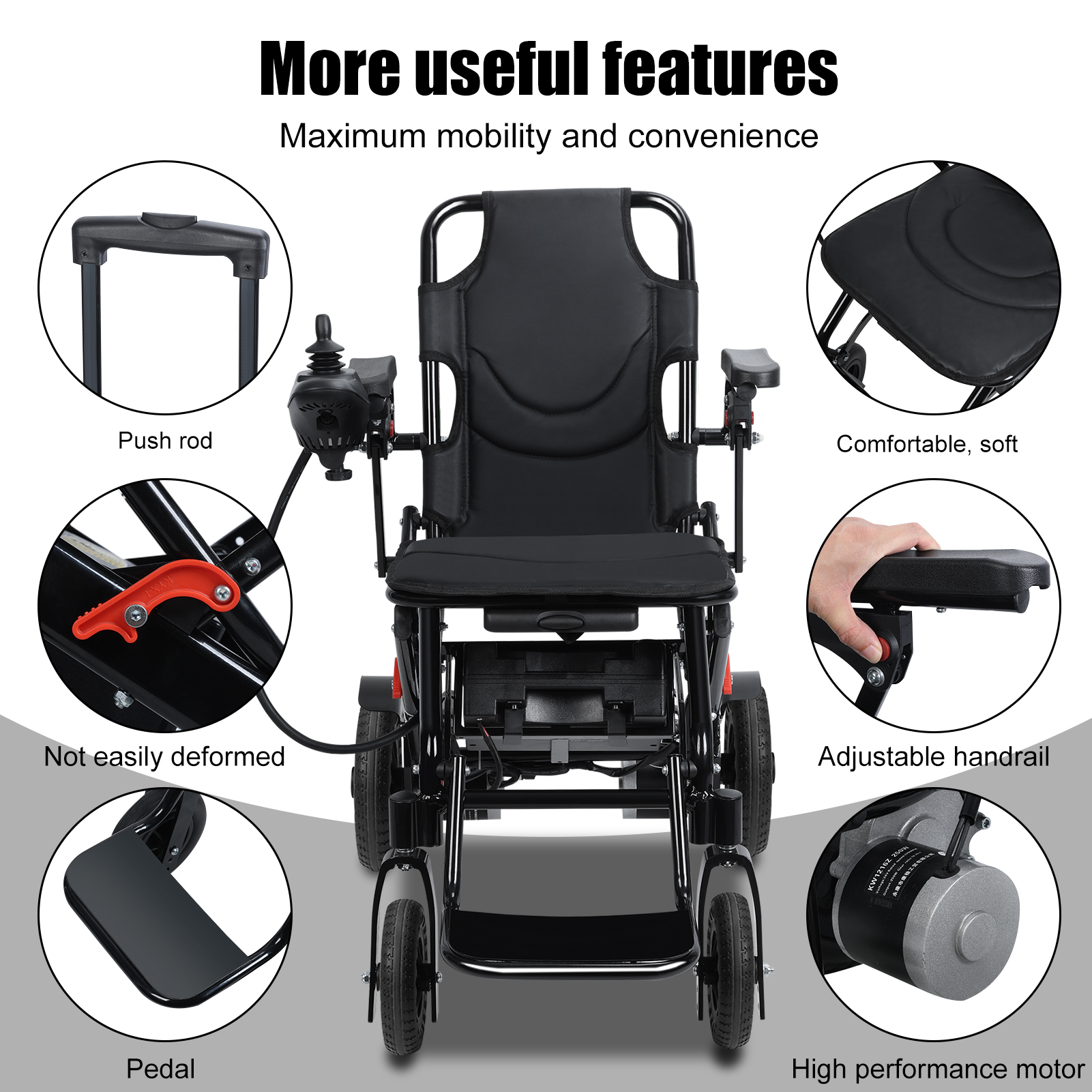 Цей легкий, складаний електричний інвалідний візок розроблено відповідно до вимог авіакомпаній, що робить його придатним як для подорожей, так і для щоденного використання.