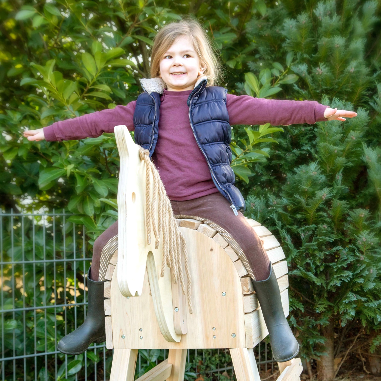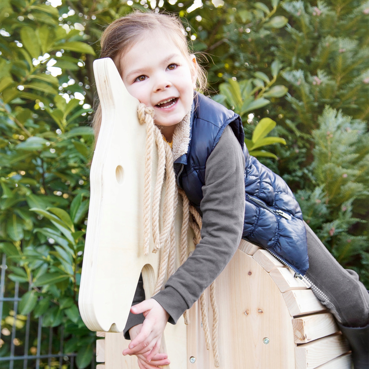 Маленькі та більші вершники можуть грати смішно з основами догляду та верхової їзди. Мане і сизальський хвіст заохочує дітей змінювати, плести та прикрасити. Завдяки побудованому ступеня, потрапляння в по -дитячому буде простим! Ноги похилі ноги обіцяють більшу стабільність та безпеку. У шлунку у коня велике місце для зберігання! За призначенням для зберігання скрепер або пензля. Ідеально підходить для саду чи дитячої кімнати! Продукт важкий - його можна намалювати за допомогою консервантного лаку відповідно до побажань та потреб власника. Розмір спини коня був розроблений для розміру сідла, який продається окремо. Основні особливості: У наборі, хвіст і гриб, дерев’яний простір для зберігання в животі, щоб смішно визнати обов'язки догляду за доглядом