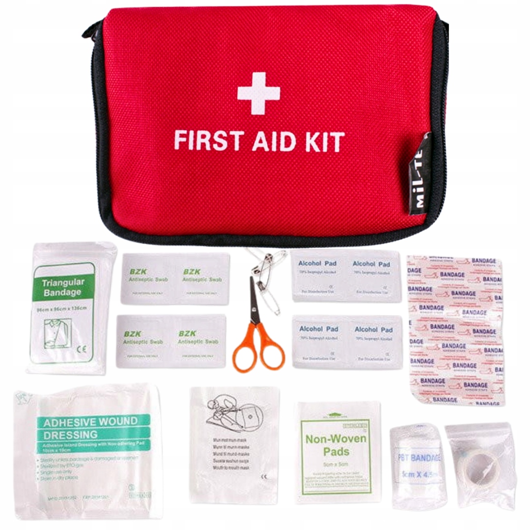 Аптечка укомплектована основними елементами, необхідними для надання першої допомоги, зокрема:
