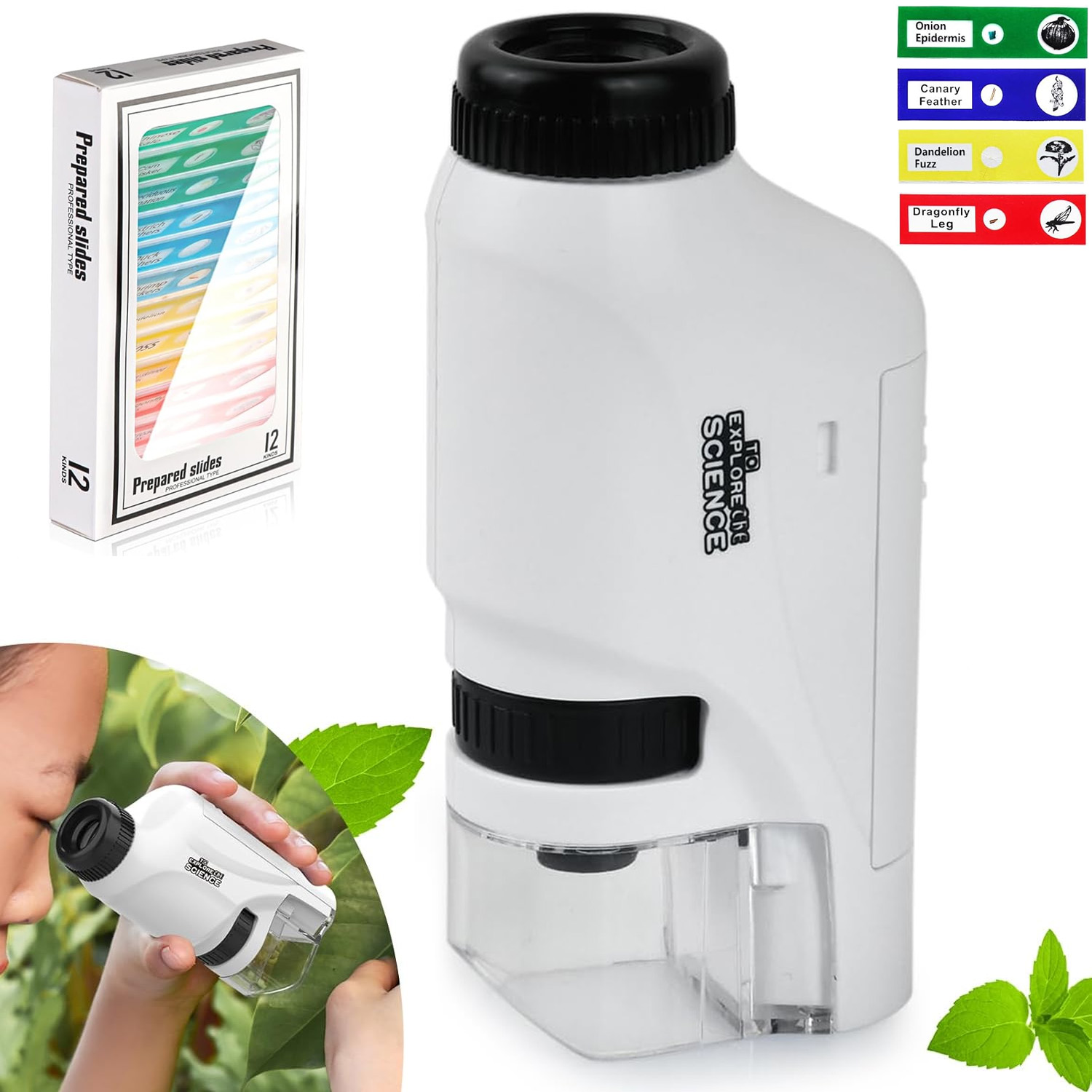 🔍 Ідеально підходить для маленьких дослідників - цей легкий і зручний мікроскоп дозволяє дітям досліджувати таємниці природи зі збільшенням від 60x до 180x. Набір включає 12 готових препаратів, завдяки яким юний науковець може негайно почати спостереження!