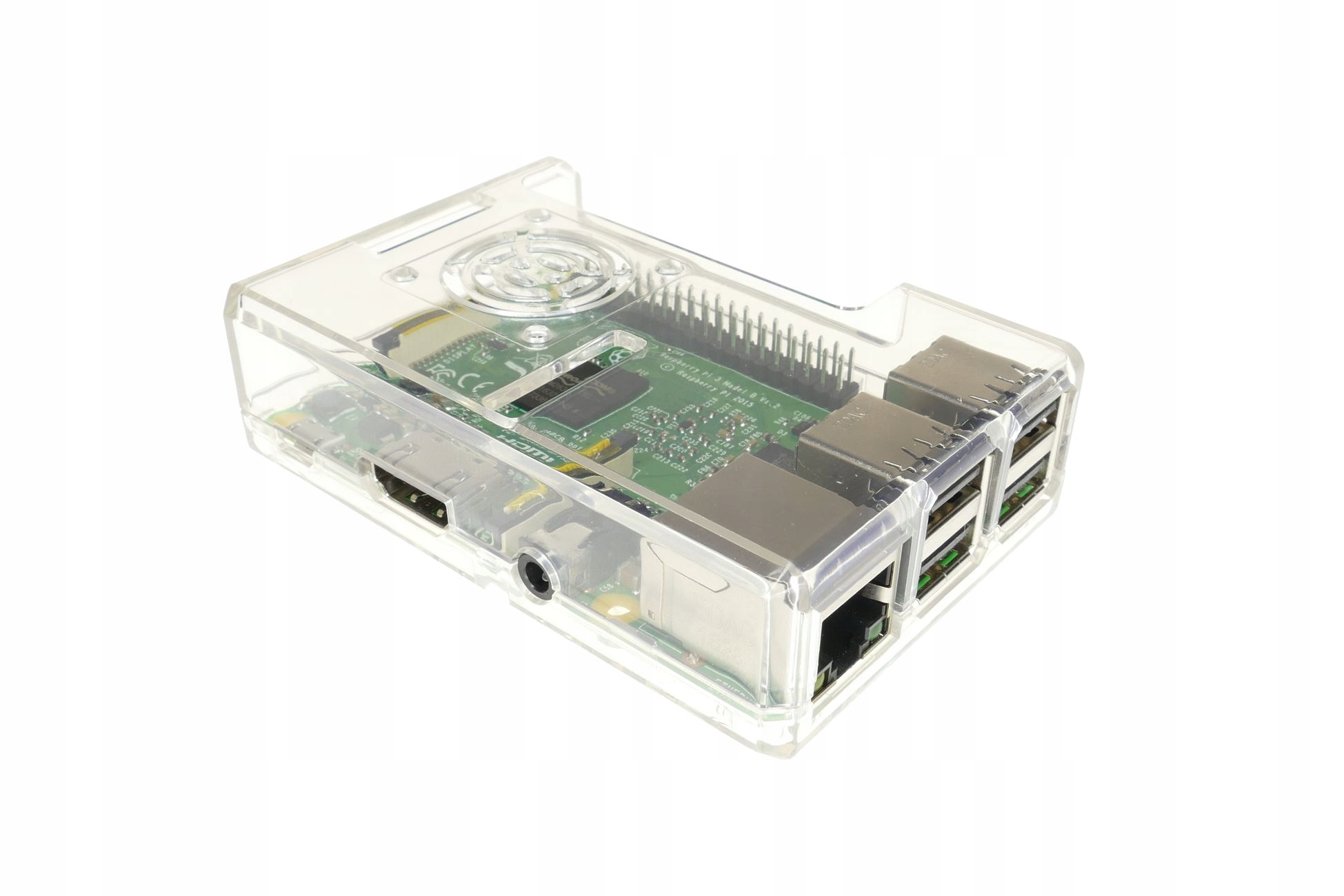 Пластиковий корпус для Raspberry Pi 3b+ прозорий. У корпусі є отвори для всіх плиток Pi Rasperry, таких як USB -розетки, розетка HDMI, роз'єм для навушників, розетка RJ45, мікросетка Micro USB. У корпусі є можливість встановити в ньому додатковий вентилятор охолодження 30*30 мм. Набір включає самостійні корпусні ноги та болти для закріплення малинової плитки до корпусу. Пропозиція не включає малиновий комп'ютер.