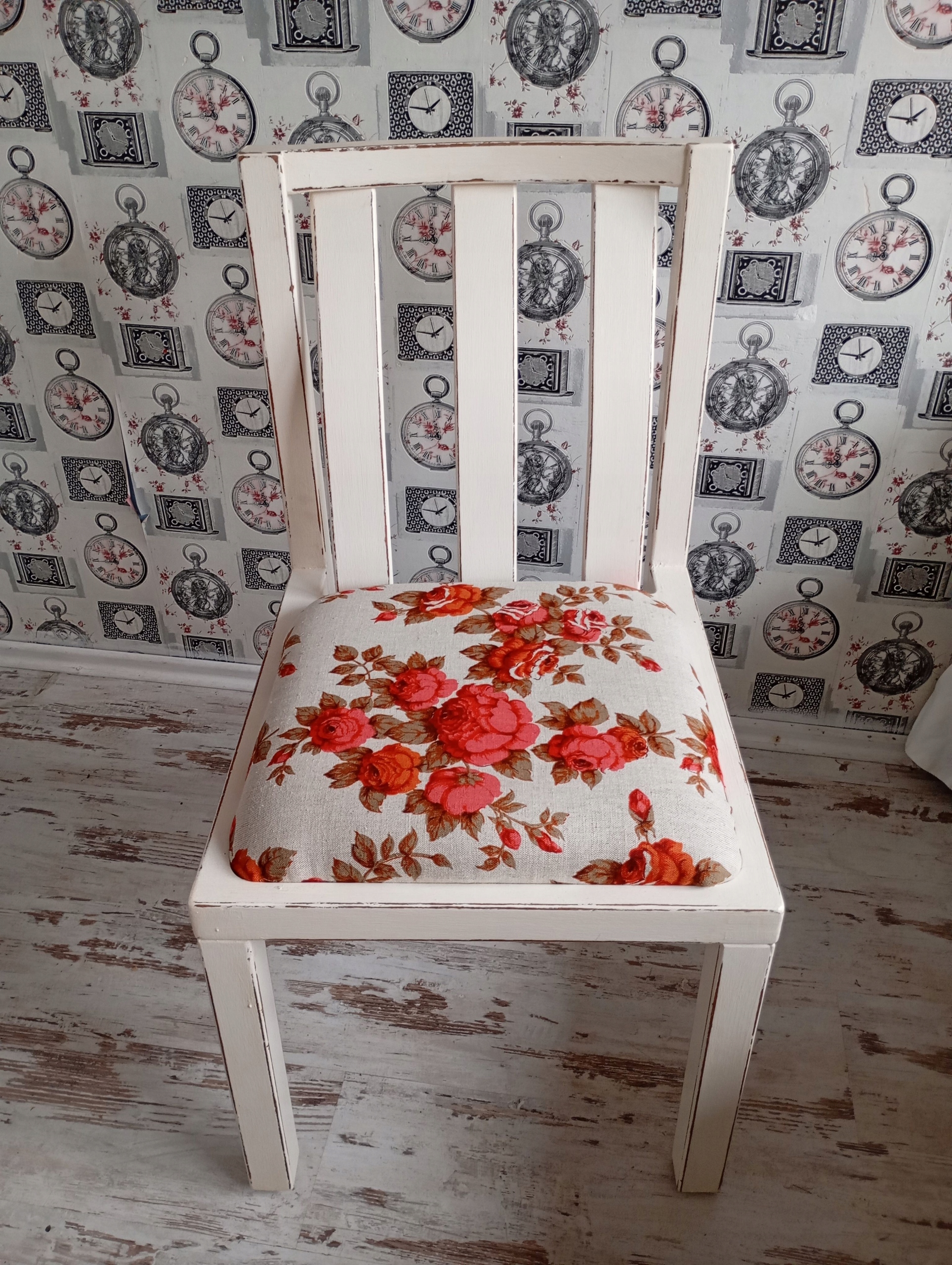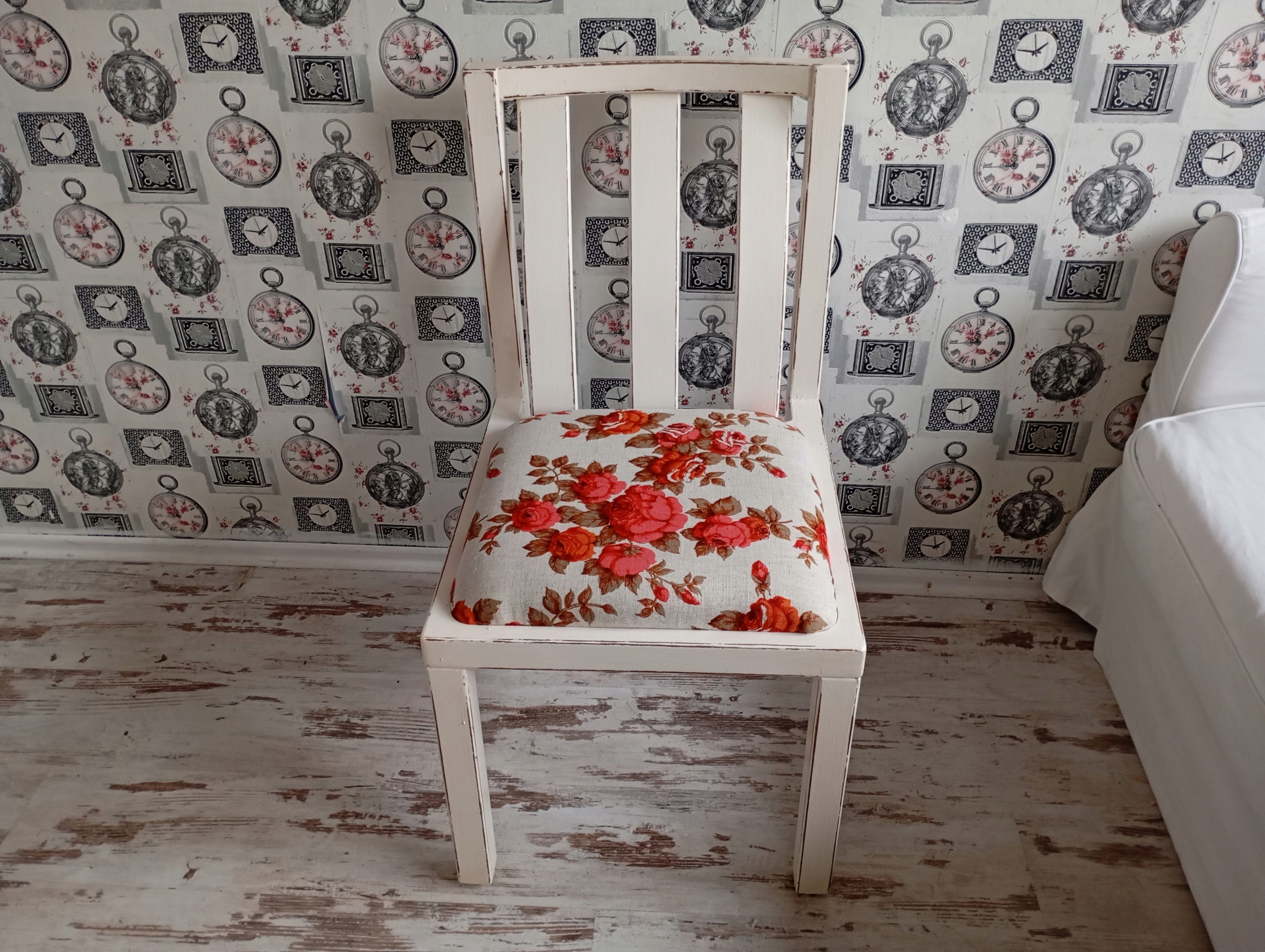 MALOWANE TAPICEROWANE KRZESŁO, FOTEL RÓŻE, SHABBY, PO RENOWACJI