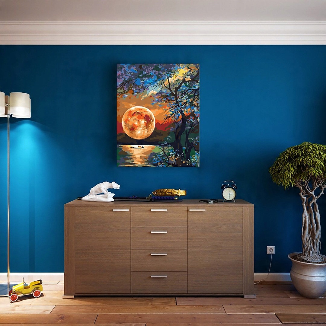 Картину за номерами «Місяць біля озера» можна придбати собі або на подарунок підлітку чи дорослому, незалежно від їх віку. Робота над його розфарбовуванням неодмінно подарує вам масу приємних моментів, а вже виконана робота стане чудовою і ефектною ідеєю для подарунка, яким ви зможете прикрасити свою квартиру чи офіс .
