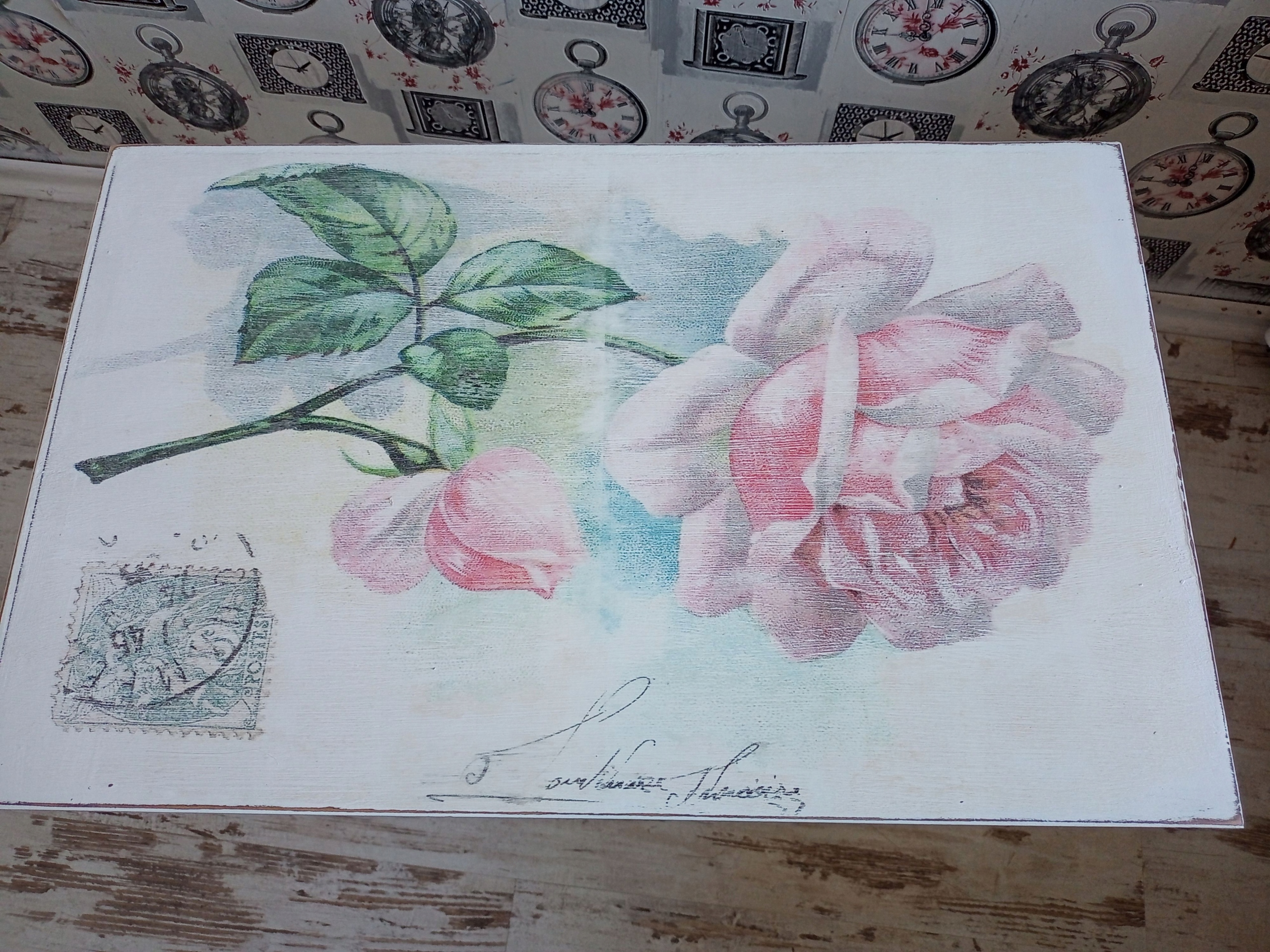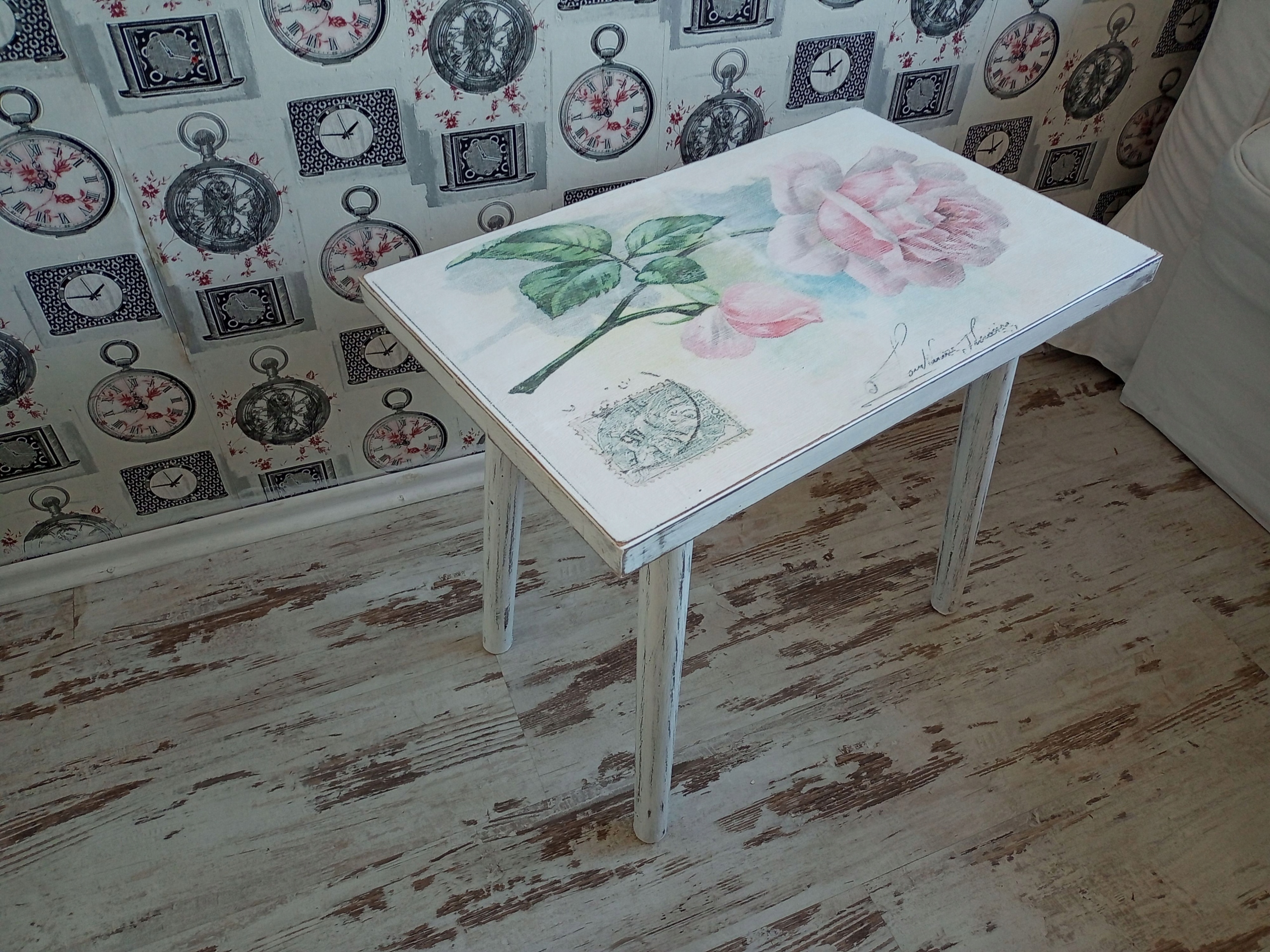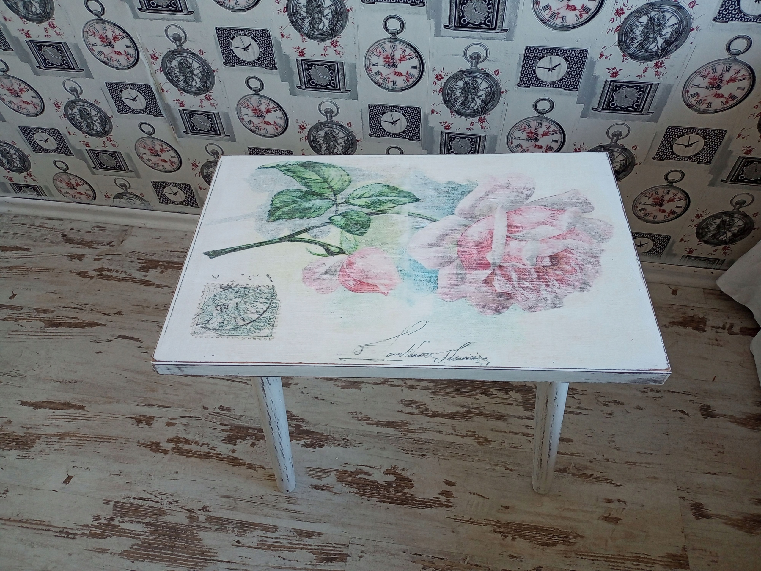 MALOWANY STOLIK STOLICZEK, RÓŻA, SHABBY CHIC