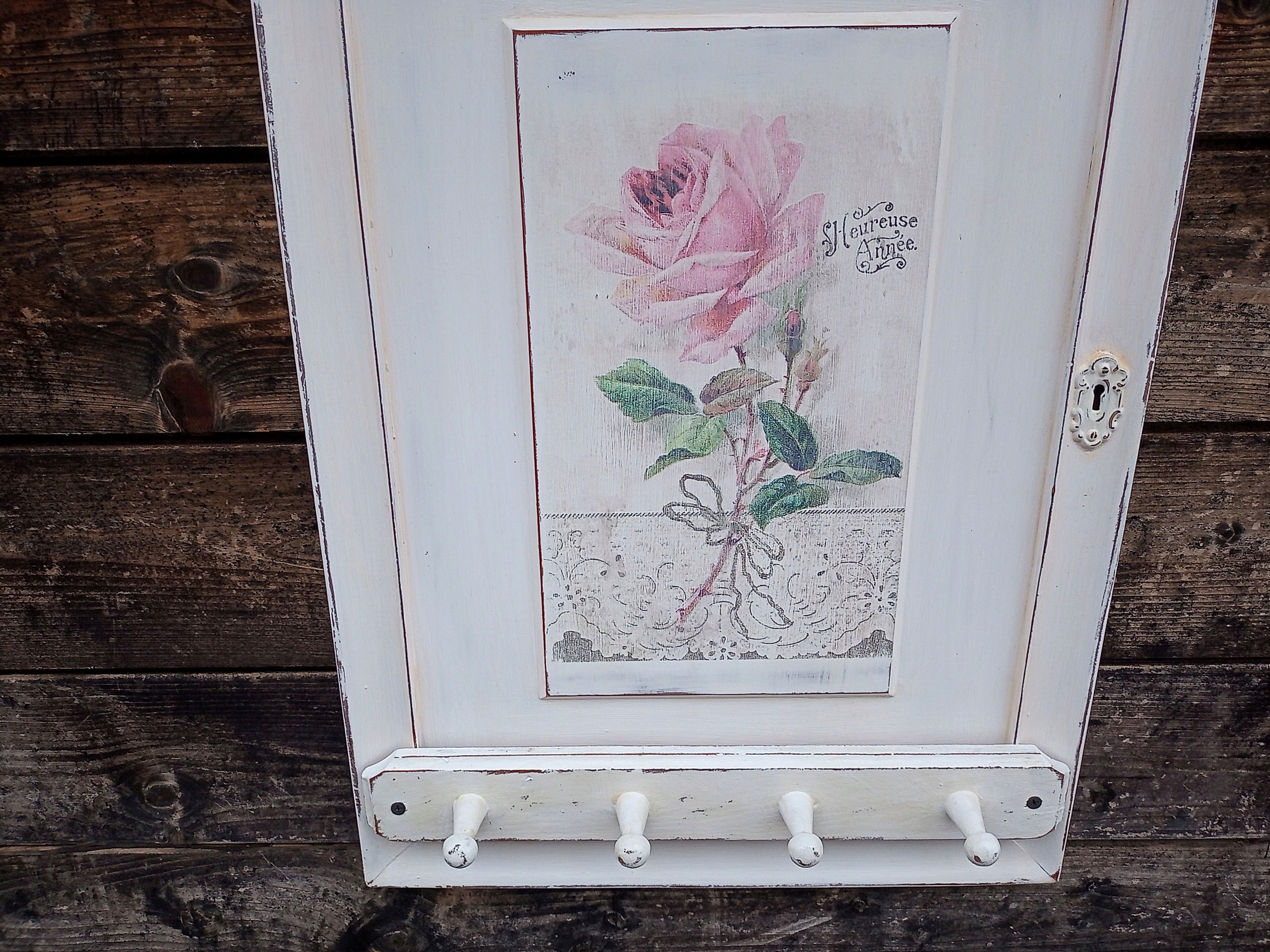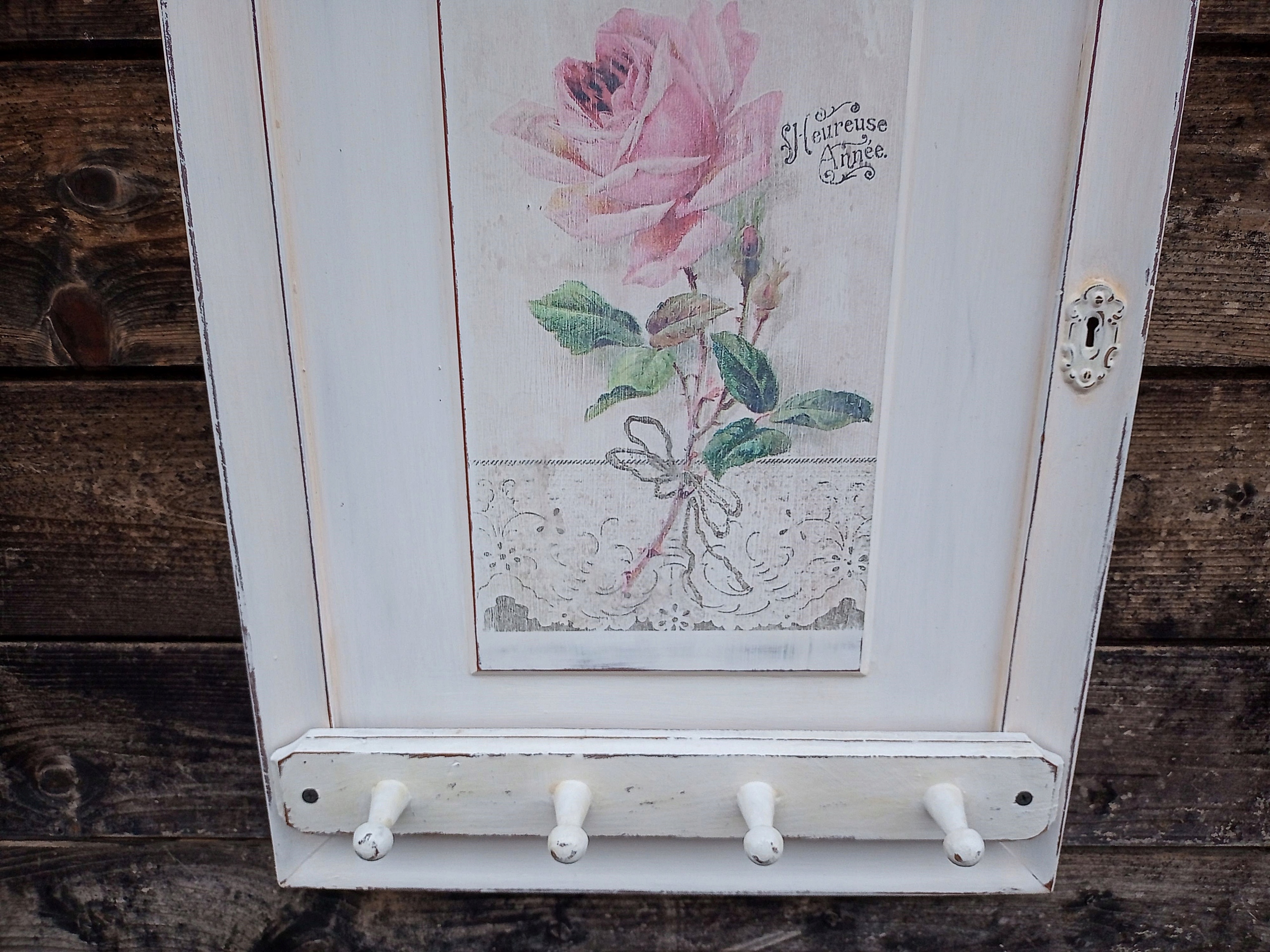РОЗПИСОВАНА ВІШАЛКА ПАНЕЛЬ РОЗА ШЕББІ ШИК
