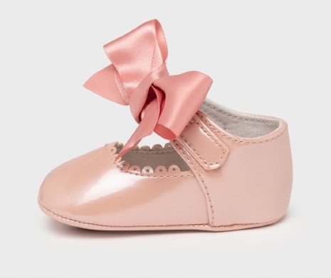 Тапочки для новонароджених дівчаток від 0 до 18 місяців, у класичному та позачасовому стилі для елегантних комплектів одягу. Взуття з внутрішньою підкладкою та внутрішньою підошвою з дихаючої бавовни. Зовнішній шар лакований. Регульована застібка на липучці, яка гарантує ідеальне прилягання до стопи. Оздоблення: декоративна палітурка. Цей товар упакований у коробку з лінії Newborn, ідеально підходить для особливих випадків.
