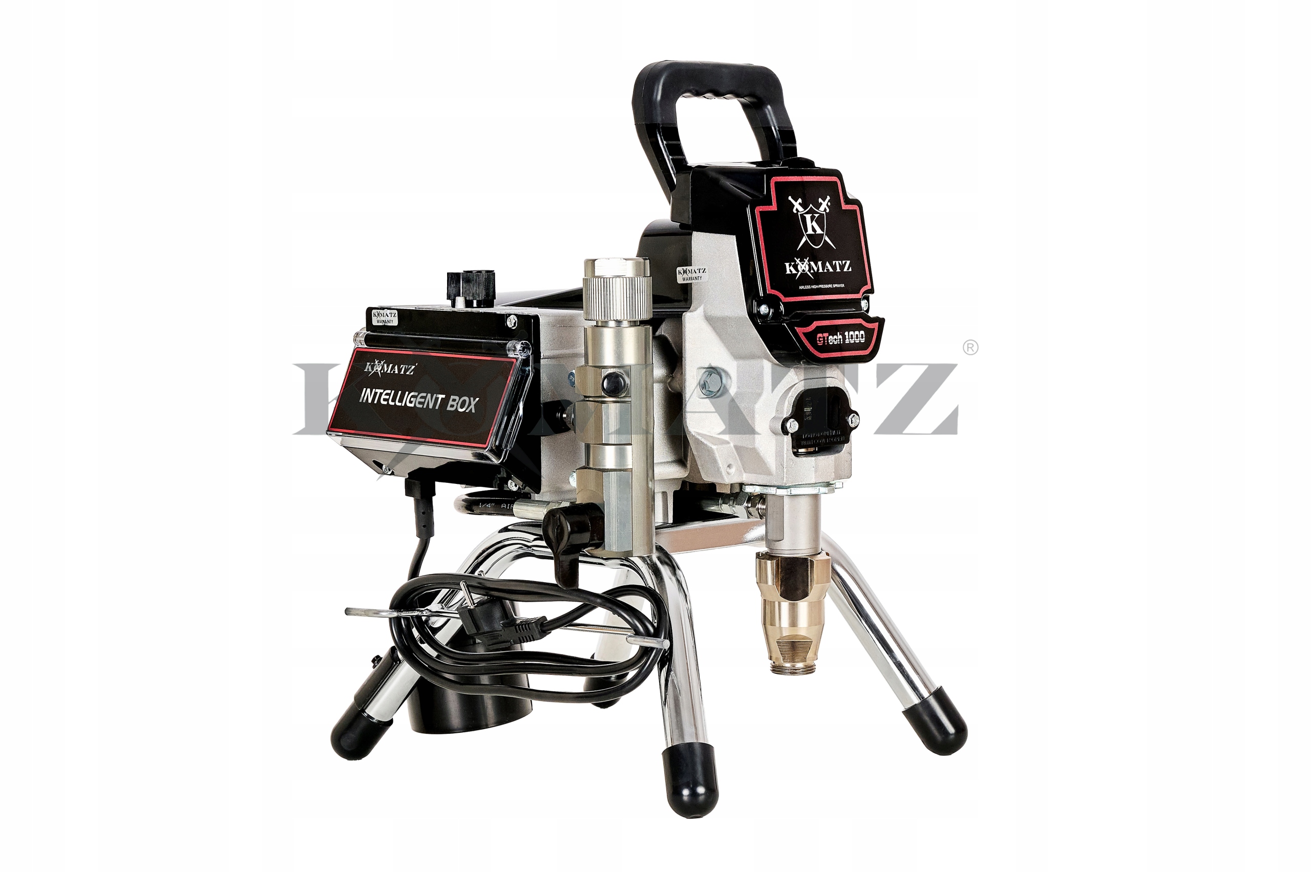 Фарбувальна установка GTech 1000 KOMATZ із безщітковим двигуном потужністю 850 Вт і ефективністю 1,9 л/хв — це пристрій із різноманітним застосуванням. Він працює в безповітряній системі - без використання повітря чи компресора.