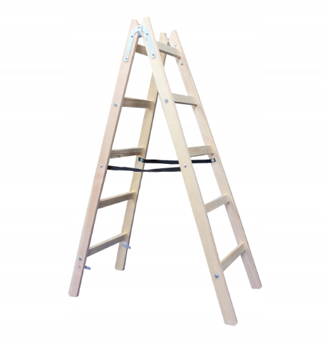 Високоякісна фарбувальна драбина. Третя сходинка з бука. Додаткове посилення найбільш часто використовуваної сходинки. Легка, п'ятиступінчаста з гачком для малярного відра. Просочена деревина. Він також ідеально підходить для використання електриками. Універсальне використання Виготовлено відповідно до стандартів PN-EN 131/1, PN-EN131/2 Виготовлено з деревини сосни без сучків.