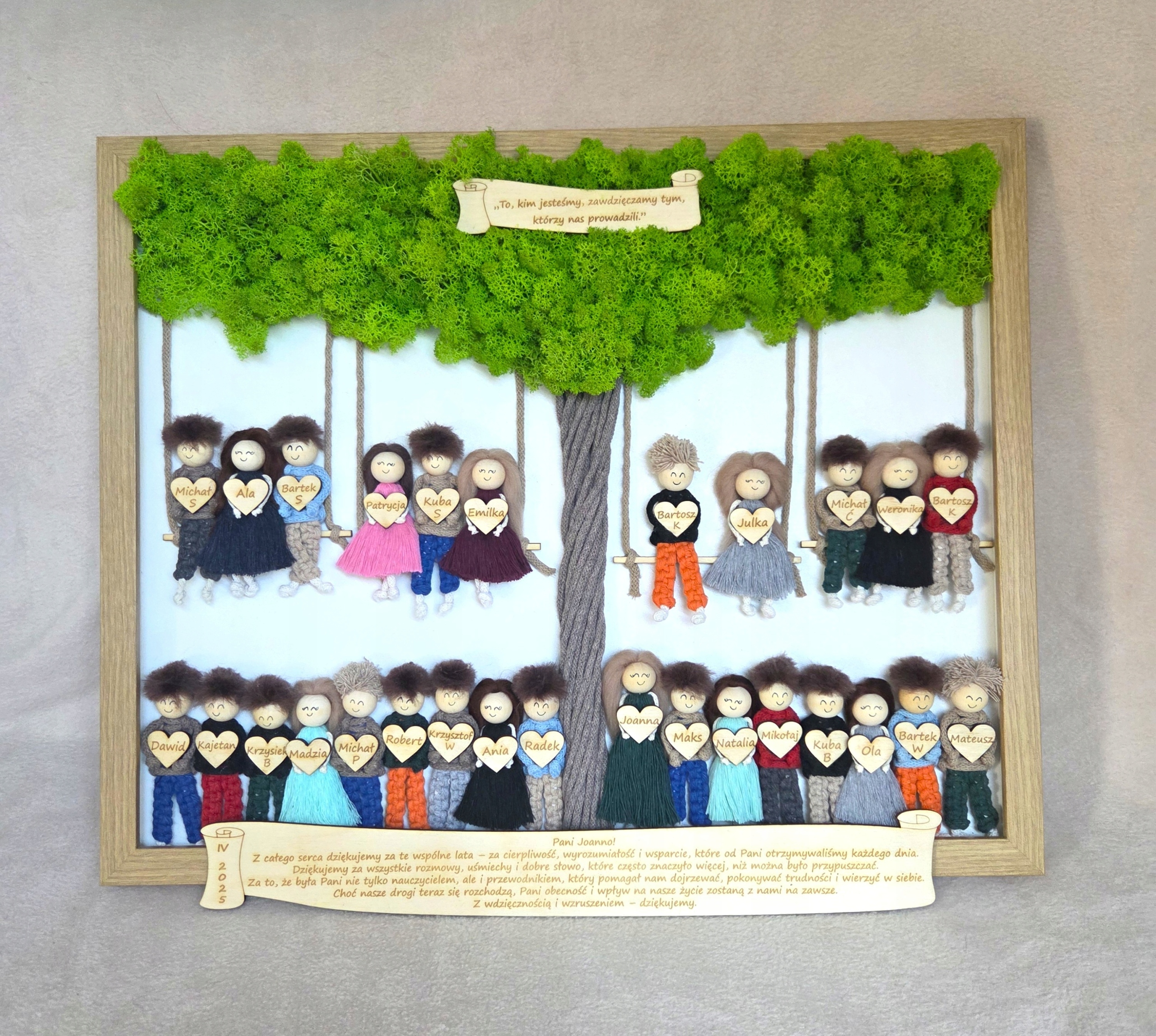 Малюнок, кадр з мохом, макрама, кінець навчального року, 14 ляльок, 52х42 см