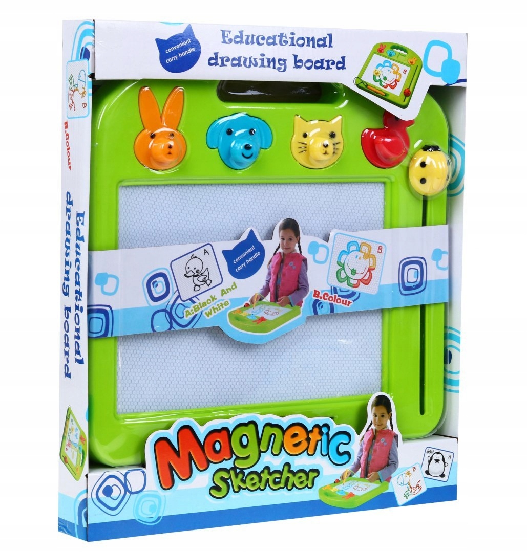 - Опис - Велика, барвиста ДІЛОВА ЗАПИСКА + марки (2082B) - Поверхня для письма біла. Над полем для малювання розміщено 4 великих штампа із зображеннями тварин (кролик, собака, кошеня, качка), що ще більше урізноманітнює цю навчальну арт-гру. З правого боку знаходиться слайдер з сонечком, який при переміщенні стирає малюнки. Поле для малювання має 4 кольори, вбудовані у фон (червоний, синій, зелений і жовтий). Малюємо спеціальним стилусом, розміщеним під зоною малювання. Стилус кріпиться на практичній мотузці, що унеможливлює його втрату в запалі гри. Стилус був розроблений, щоб стимулювати розвиток дитини на кількох рівнях одночасно. Ця багатофункціональна розвиваюча іграшка одночасно розвиває уяву та підтримує концентрацію та координацію рухів малюка. Через гру дитина вчиться логічного мислення, розпізнавання кольорів і форм. Розміри - опис прибл. 31 см x 30,5 см x 3 см, - екран для малювання прибл. 23 см х 16 см, - упаковка бл. 32 см х 36,5 см х 4,5 см.