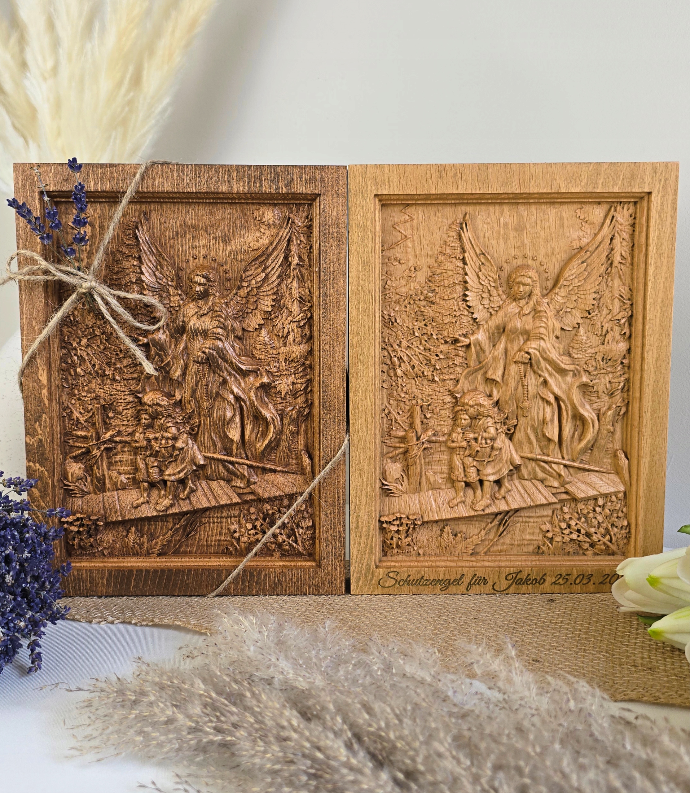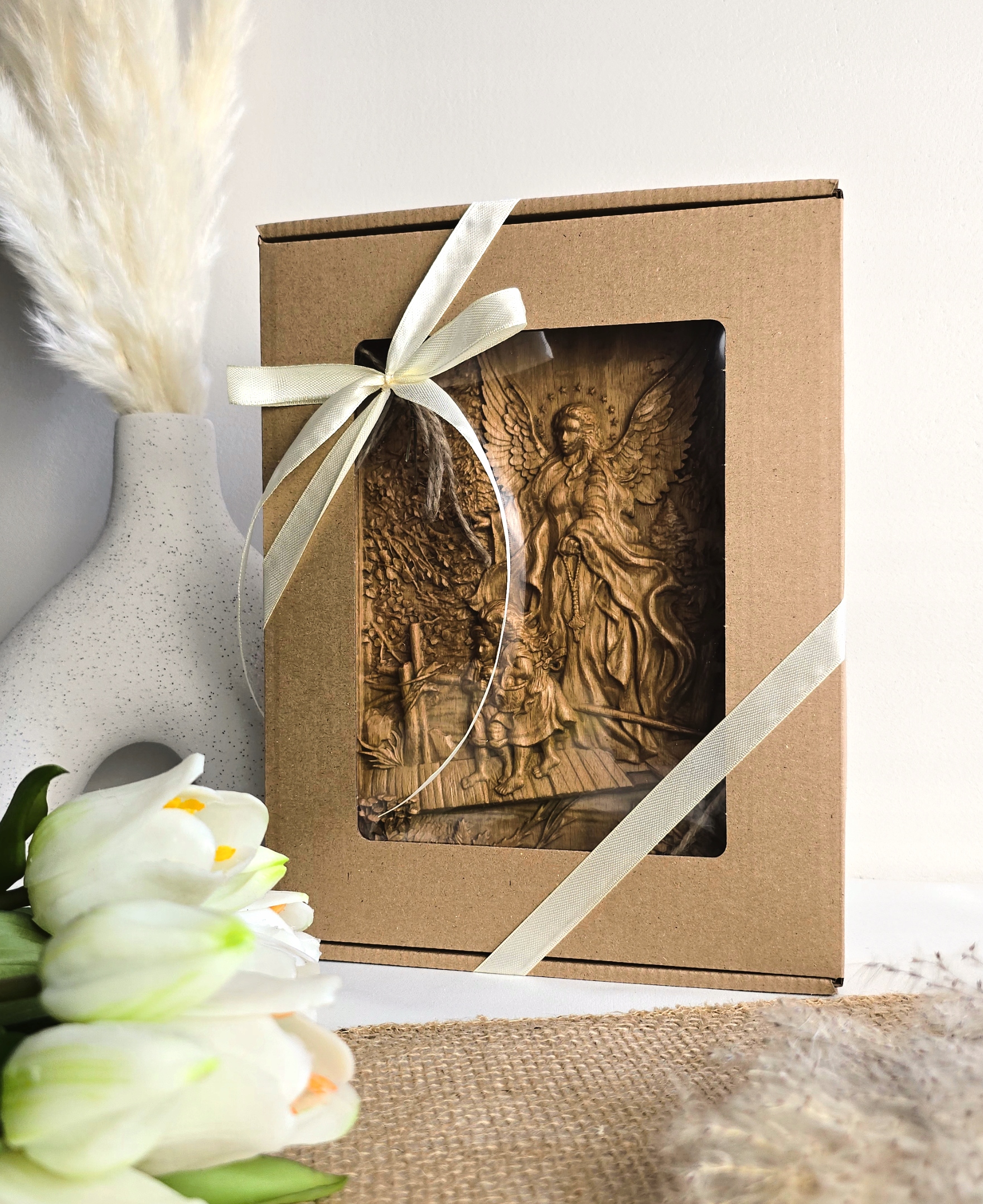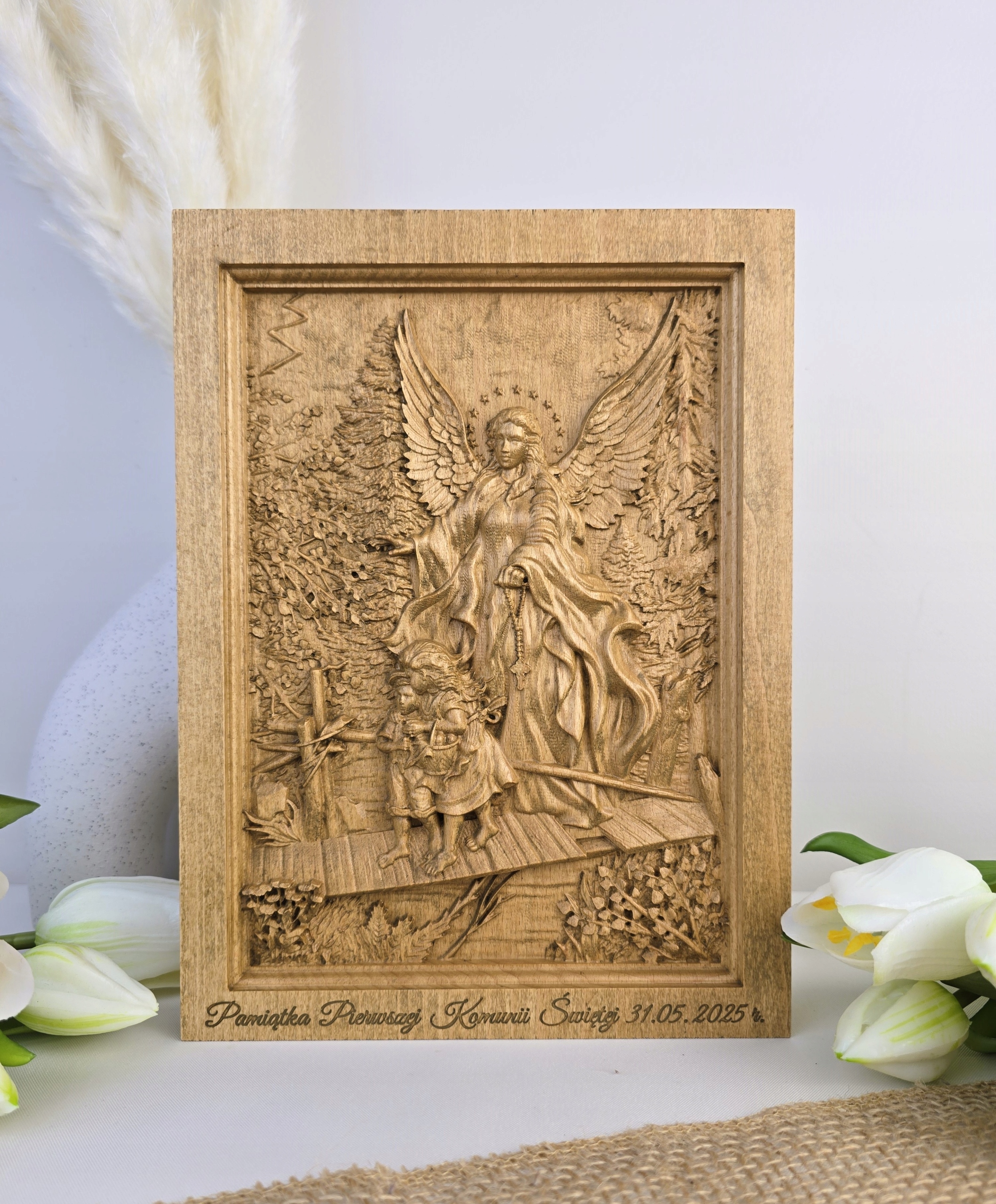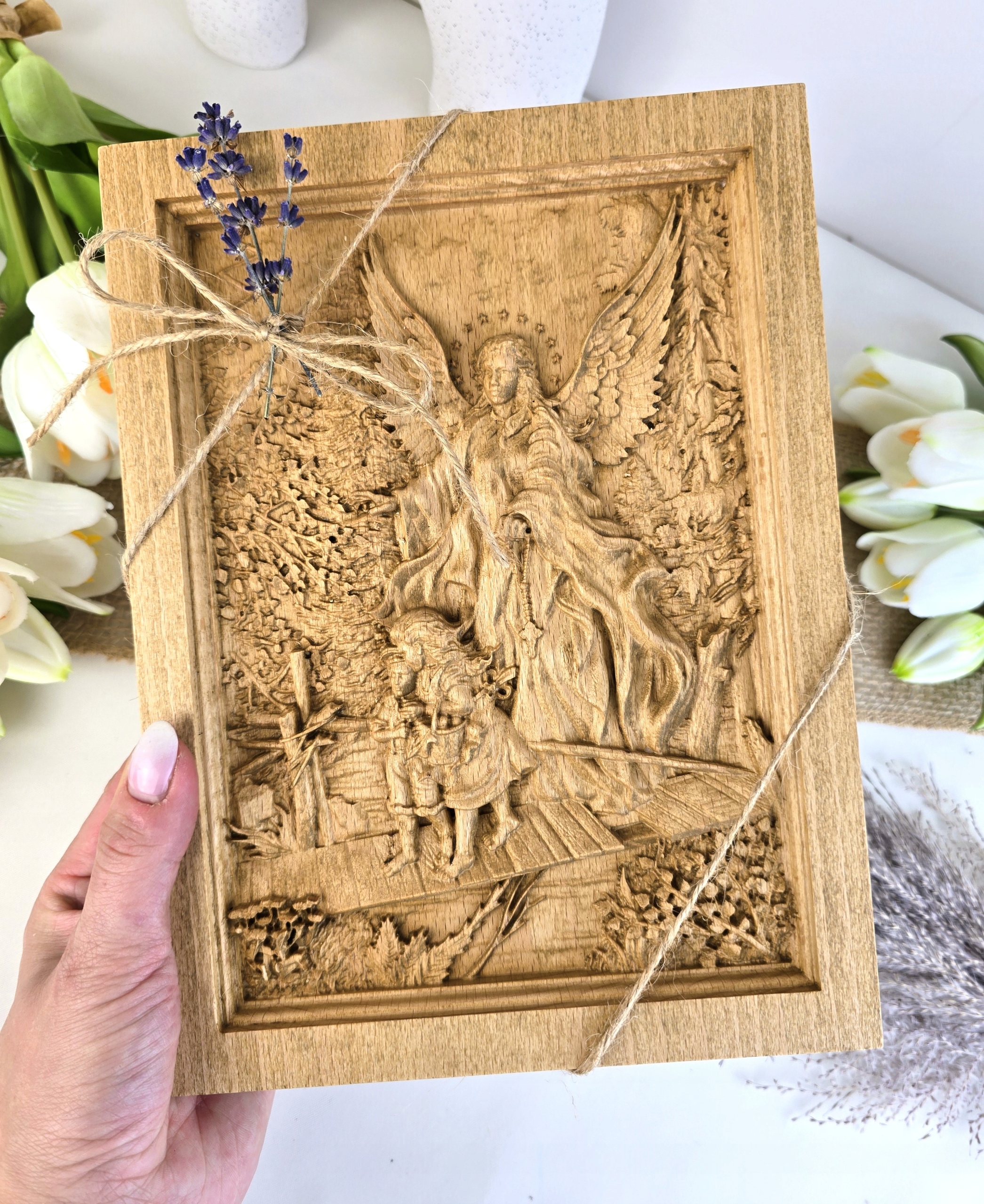 Малюнок з ангелом -опікуном подарунком BAS -реліф -дерев’яний гравер