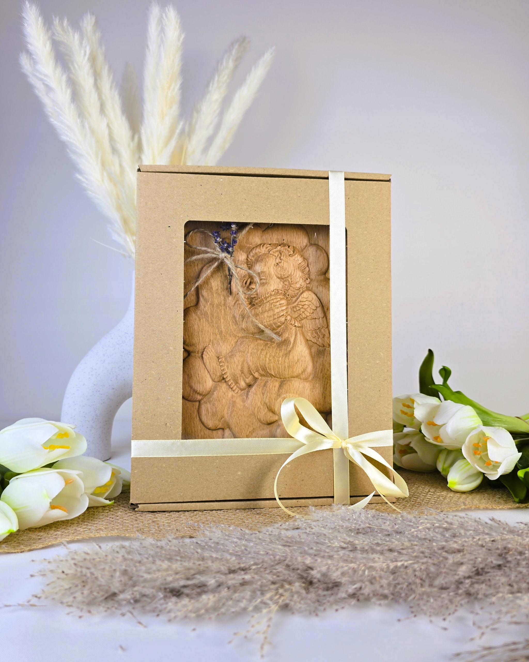 Малюнок з Ангелом, подарунок з дерев’яним хрещенням, гравірування 25х18.5