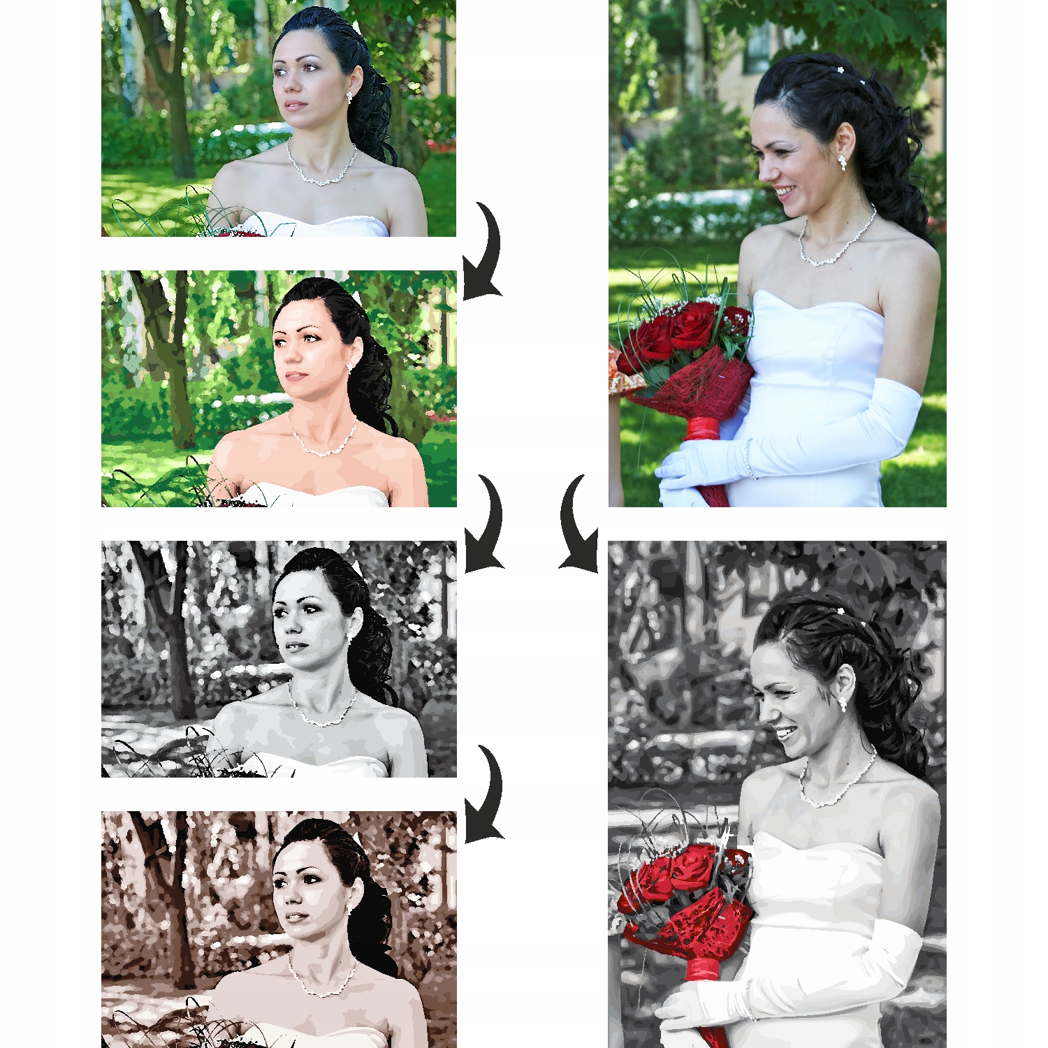 Розпис за номерами з фотографії у вибраному стилі: кольоровий, чорно-білий, сепія або акцентний колір