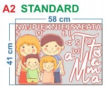 Стандарт приблизно: 80x70 см, висота великої літери (у слові mama): 22 см; малий (лінія внизу): 4 см