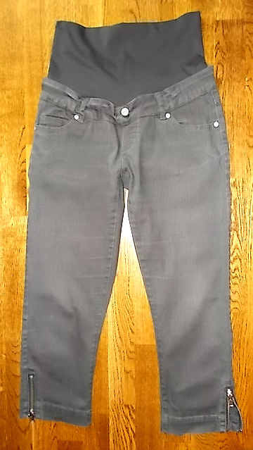 Чудові штани для вагітних - 7/8, від авторитетної компанії Licious, виготовлені з дуже якісного, злегка еластичного, темно-сірого кольору. На талії вшита під підтримуючий пояс вставка водолазки шириною 21,5 см з еластичного матеріалу сірого кольору. Спереду врізні кишені, ззаду - вшивні кишені. Штанини звужені донизу, з боків оброблені блискавками. Штани у відмінному стані, зручні, ніде не мнуться, сидять і виглядають чудово. Фото не відображає їх справжнього шарму!!! ДУЖЕ РЕКОМЕНДУЮ!!!