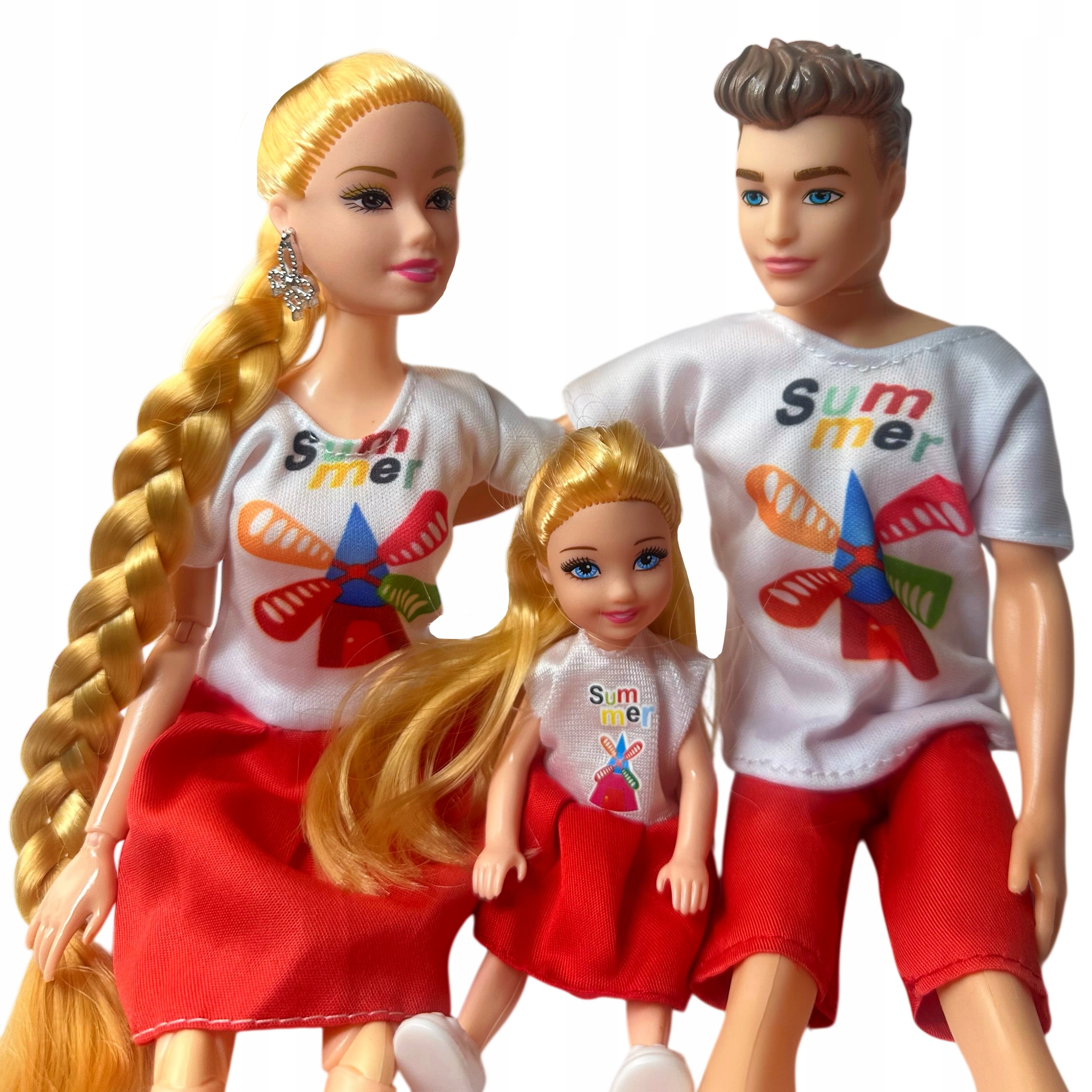 Представляємо унікальний набір ляльок із зображенням сім'ї: мама, тато і донька, одягнені в модні однакові вбрання з мотивом вітряка та написом "Літо". Це ідеальна іграшка для дітей, які люблять розігрувати сімейні сценки та розвивати творчість.