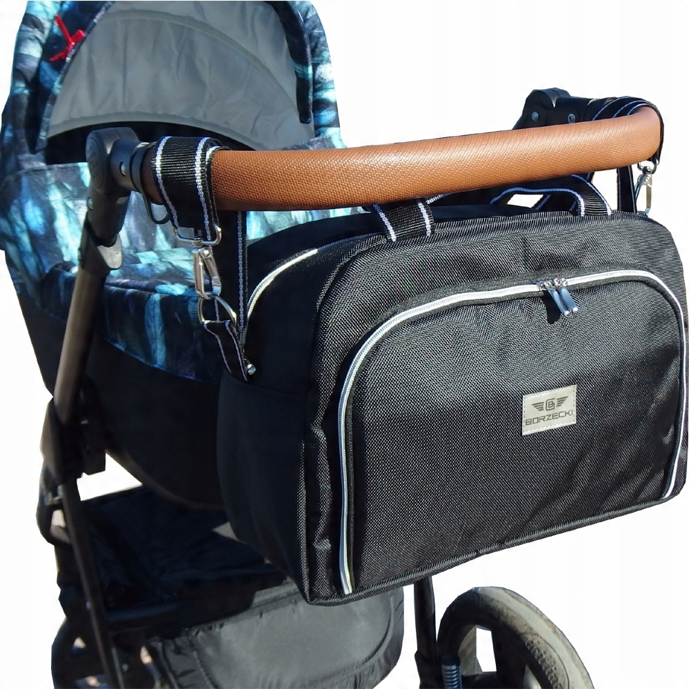 Підходить для носіння в руці, на плечі та має спеціальну систему пряжок для підвішування на ручку коляски, просто зачепивши її.