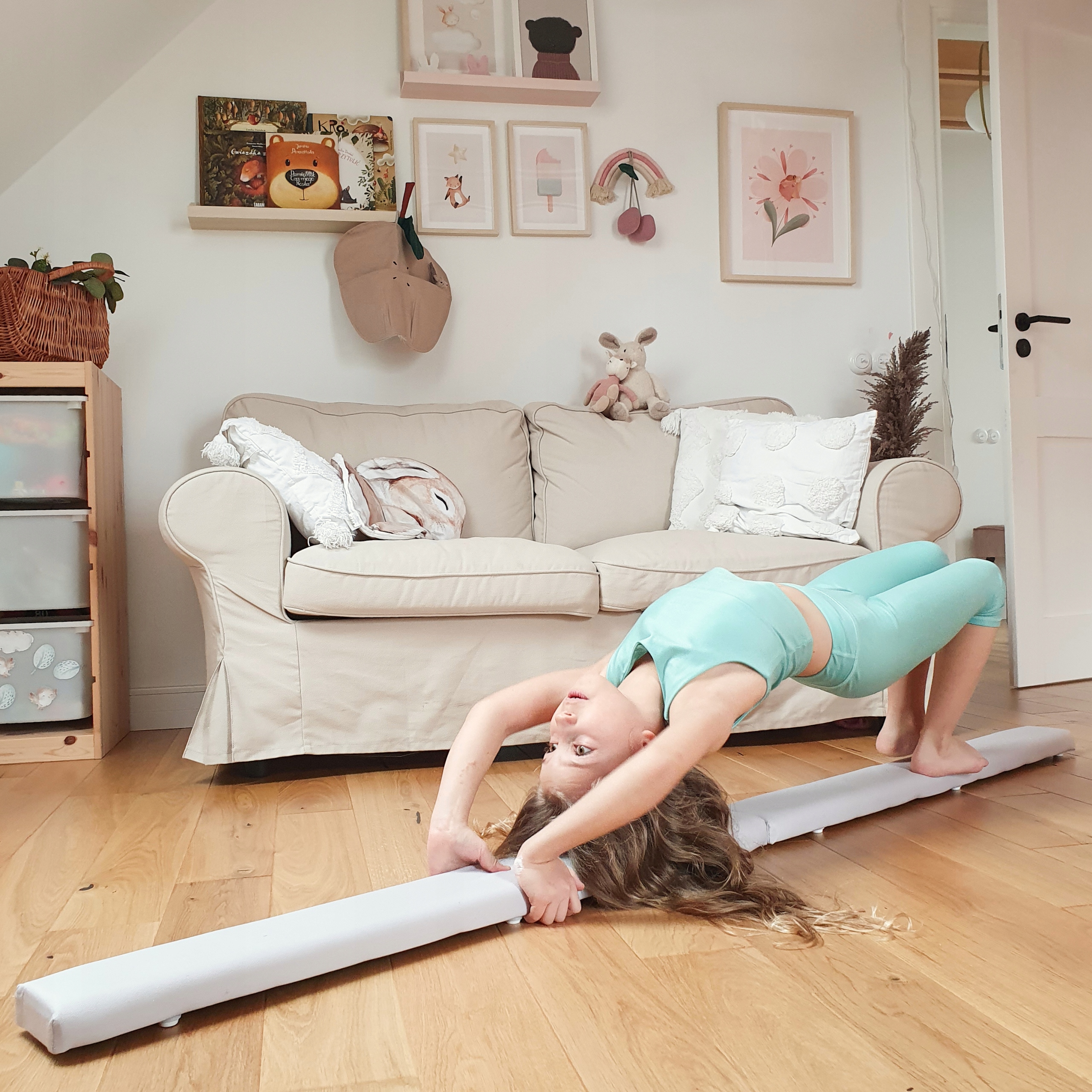 Брус для дітей - це міцний продукт, завдяки якому ваша дитина може займатися гімнастикою вдома. Поперечина має висоту 5 см, що робить її ідеальною для безпечних вправ на рівновагу. Іграшка має протиковзкі накладки. Продукт відповідає суворим вимогам безпеки та стандартам EN і CE. Рекомендовано для дітей віком від 3 років.
