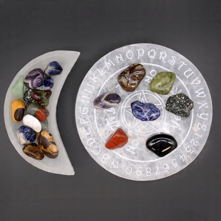 Вважається, що селенітний камінь має багато переваг, включаючи позитивний вплив на сон і очищає повітря. Селенітні плитки також використовуються для «зарядки» природних каменів, ідеальних для ритуалів.