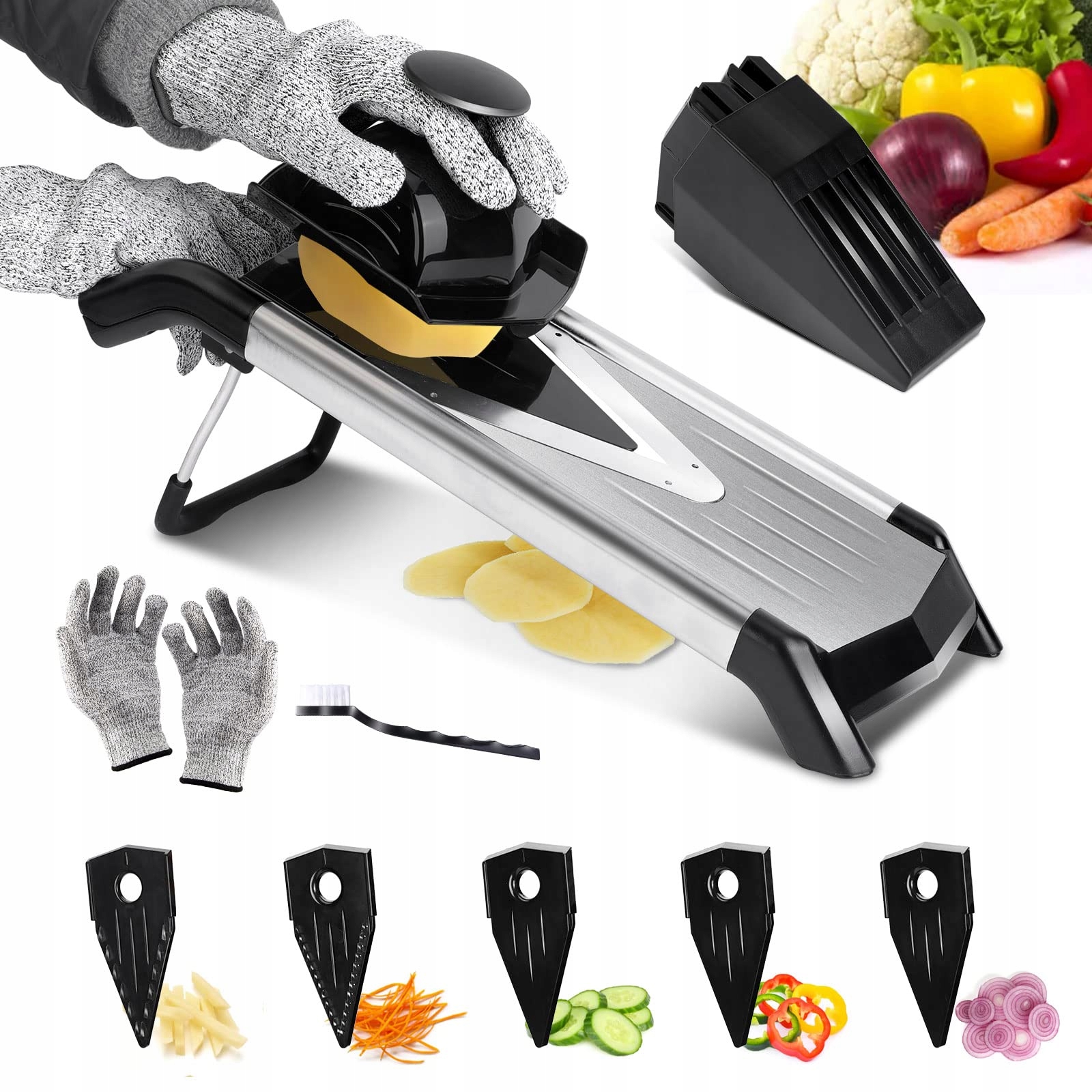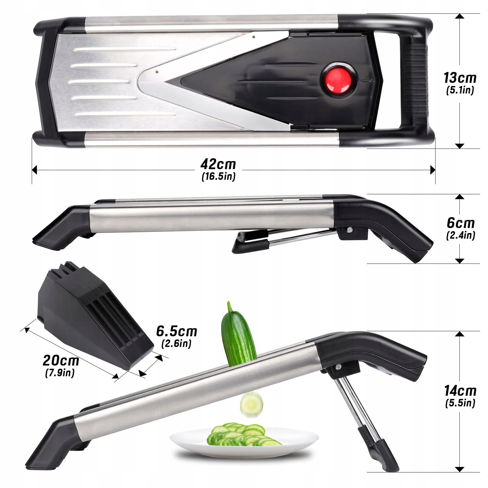 - Наша безпечна, професійна кухонна мандолін має 5 змінних лез (1,5 мм, 2,5 мм, 3,5 мм) або смужок Julienne (3,5 мм, 7 мм).