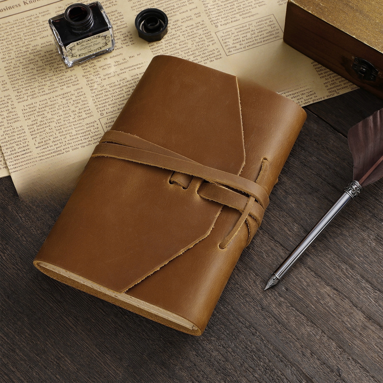 ✅ Шкіряна обкладинка прикріплена за допомогою мотузки для надійного закриття та легкого відкриття.