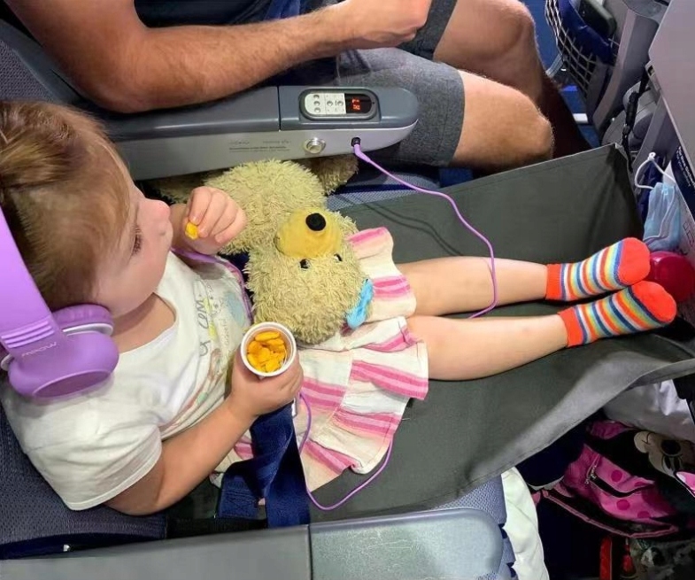 Підніжка для дитячих літаків була розроблена спеціально для дітей. Як продовження сидіння дитина може легко сидіти, має вільні руки, підтримує лише ноги дитини і може бути використана як сидіння для вікон або сидить у середньому ряду зі столом з лотком на передніх виходах.