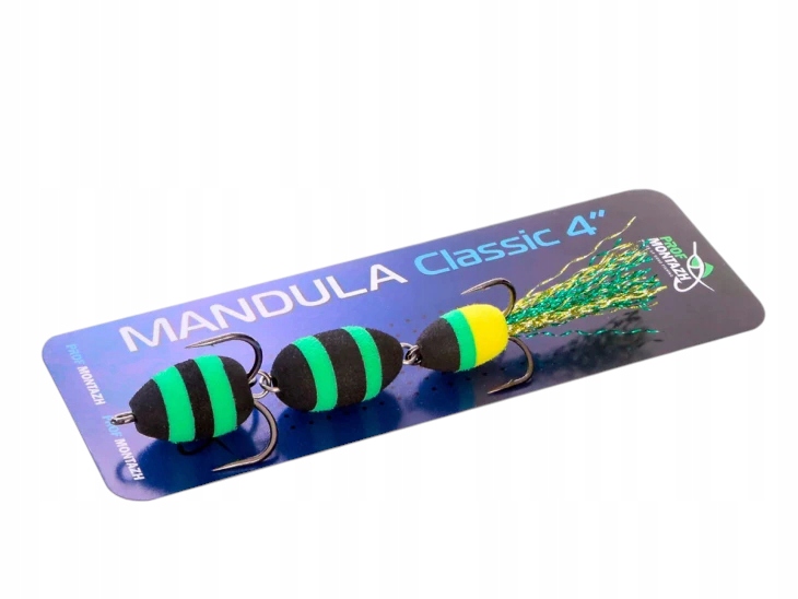 Mandula classic 3 segments 100mm - має найширшу колірну гамму - 152 контрастних, дво- і триколірних поєднання, що дозволить підібрати мандулу на будь-який смак і умови лову хижака. Складається з 3 обтічних сегментів. Сьогодні ця форма тіла стала класичною і перевірена мільйонами рибалок по всьому світу. загальна довжина 10 см, це універсальний середній розмір, добре підходить для полювання на багатьох хижаків: судака, щуку, окуня, сома і навіть жереха. Оснащений двома гострими трійниками розмірів 2 і 4. Оздоблення хвоста виконано з високоякісного двоколірного люрексу, який додатково розпушується вручну на етапі виготовлення мандули. Приманка добре працює як в стоячій, так і в проточній воді. Абсолютно невибаглива до типу навантаження (розкладна Чебурашка, Джиг-Ріг, Данс-Ріг та інші). Завдяки обтічній формі корпусу дозволяє ловити на великих дистанціях, де в більшості випадків риба не така полохлива і не піддається нападам хижаків. під тиском інших рибалок.