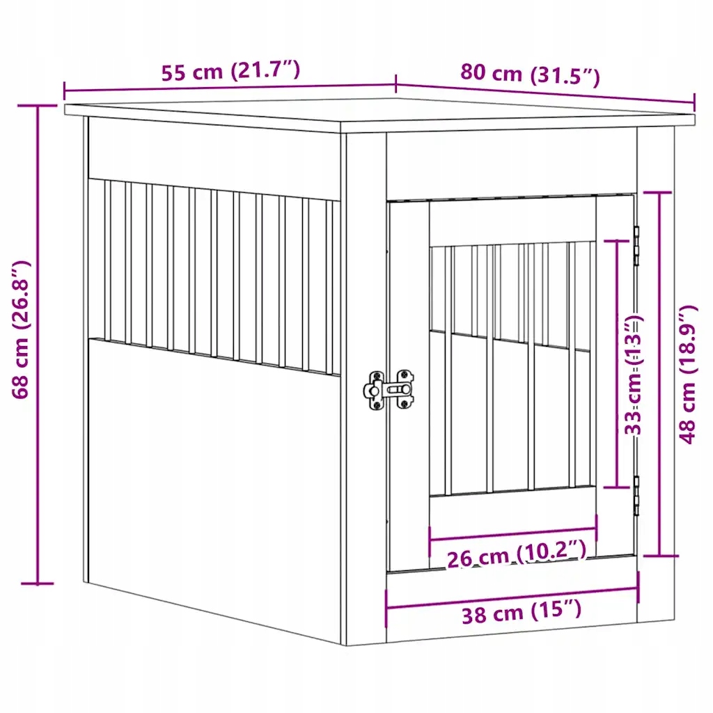 - Двері, що замикаються: клітка для собаки має дверцята із засувом для більшої безпеки. Двері можна встановити для відкривання ліворуч або праворуч.
