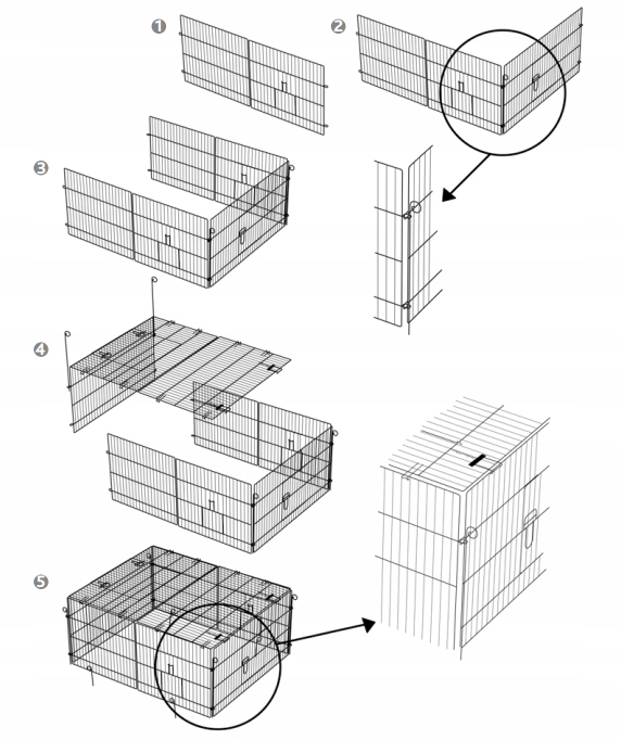 - великі бічні дверцята дозволяють додати додаткову клітку або будиночок до загону