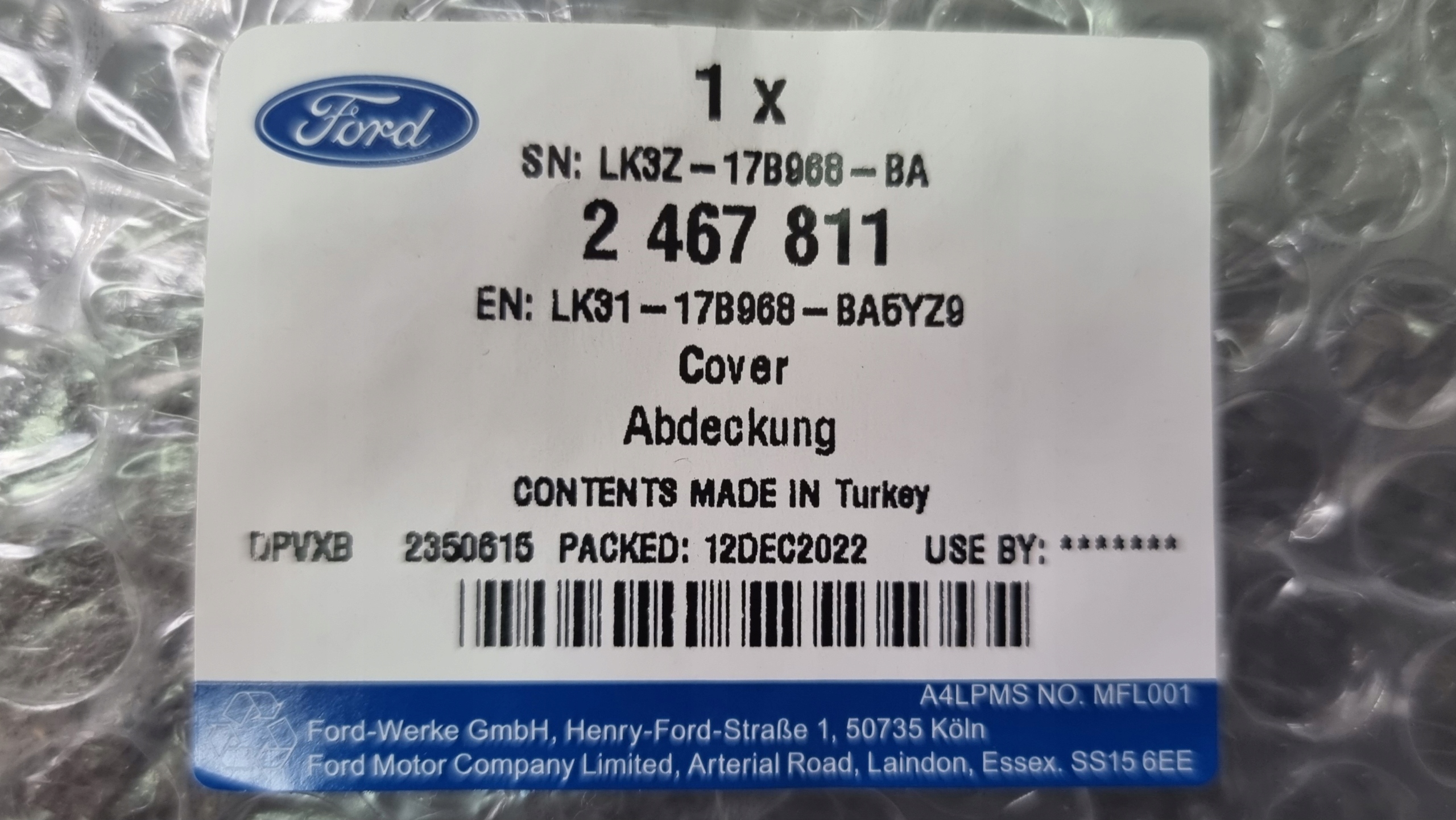 Ви купуєте оригінальний товар для автомобілів Ford. Усі частини надходять від Форда Полської. Використовуючи оригінальні частини Ford, ви впевнені в якості та надійності, але, перш за все, ви отримуєте безпечний та відданий продукт для свого автомобіля виробником.