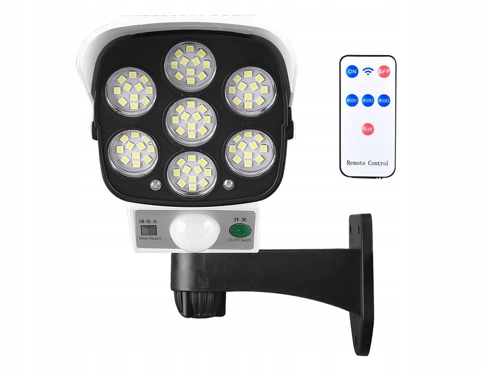 високоякісна манекенна камера -це пристрій, що працює на сонячній панелі, яка гарантує освітлення без додаткового джерела живлення. Він оснащений дуже яскравою панеллю 77 світлодіодних точок COB з сильним світлом.
