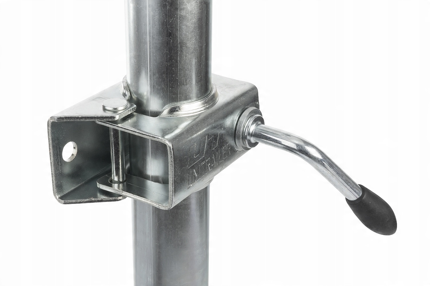 Сталеве опорне колесо для причепа в комплекті з сумісним затискачем для причепа Unitrailer. Діаметр труби 48 мм.