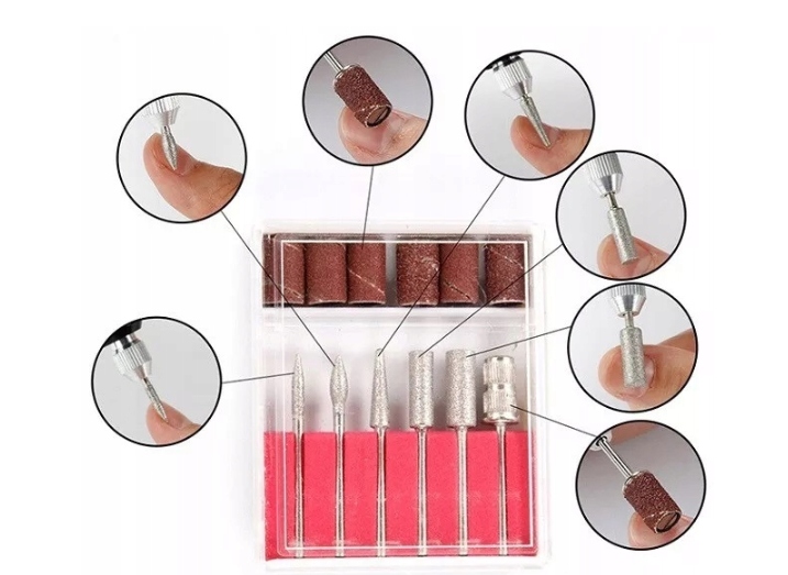 ✴ Вони були виготовлені з нержавіючої сталі , а потім збагачені діамантовим насипом. Вони призначені для гелевої та акрилової маси, а також видалення шкіри навколо валу нігтів (під рукою і ногами). не потребують використання пом'якшення гелів . Мають різні форми та розміри.