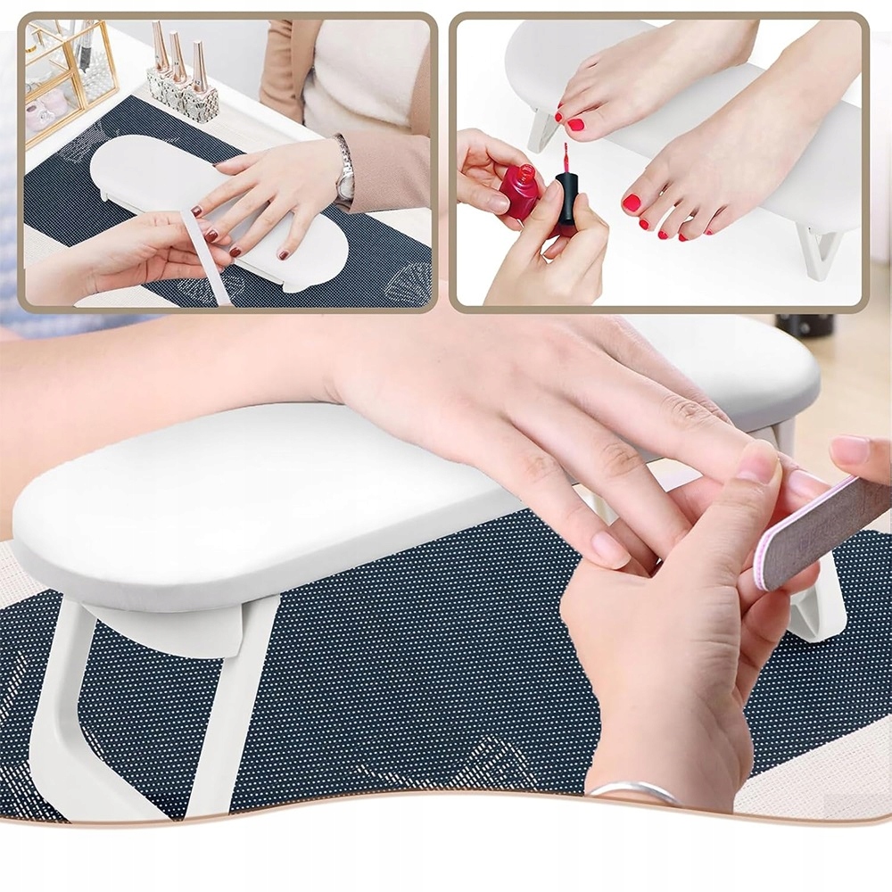 Набір включає 1 манікюрну підставку для зап’ястя та 1 килимок для столу з ПВХ. Простір під накладкою місткий, ідеально підходить для розміщення манікюрної лампи, необхідної для професійного догляду за манікюром і педикюром.