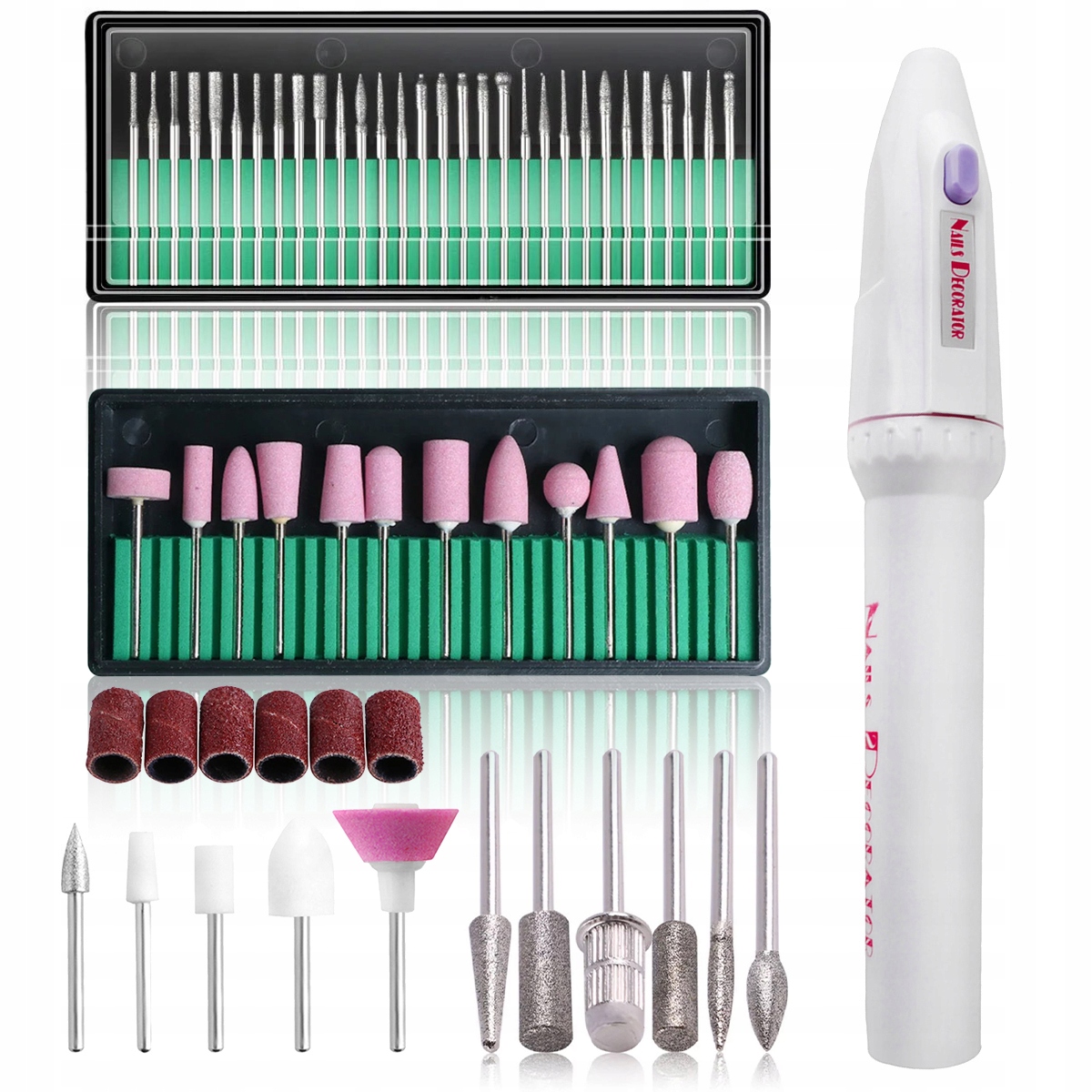 - 5 різців: різак для видалення кутикули, різак для видалення кутикули, різець для укорочення та формування форми, різець для вирівнювання поверхні, різець для полірування