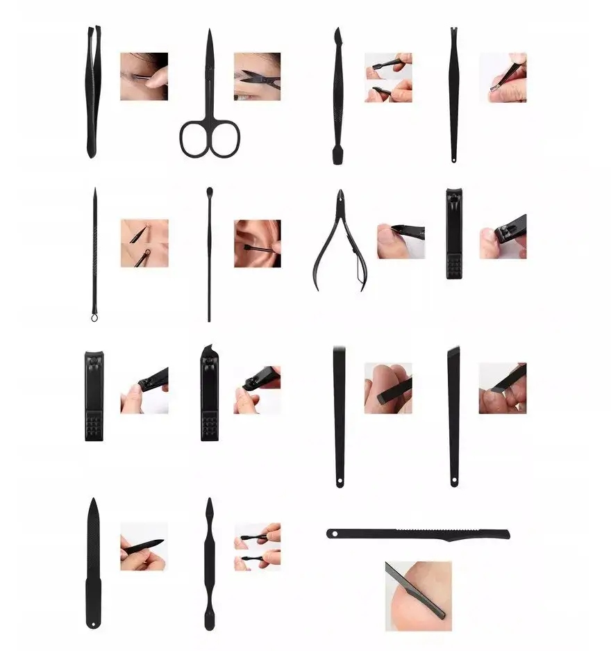 Набір для догляду за нігтями в елегантному футлярі необхідний для кожної жінки. Елементи набору виготовлені з вольфрамової сталі. Він характеризується високою міцністю і стійким до стирання та вицвітання. Матеріал гіпоалергенний, не викликає алергії.
