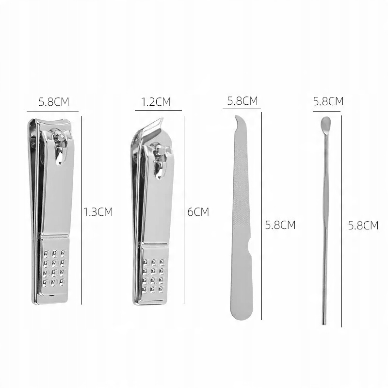 Оснащений 4 елементами, такими як ножиці та пилка. Всі інструменти виготовлені з високоякісної нержавіючої сталі, безпечної при контакті зі шкірою. Все було упаковано в естетичний футляр, який полегшує перенесення та зберігання набору.