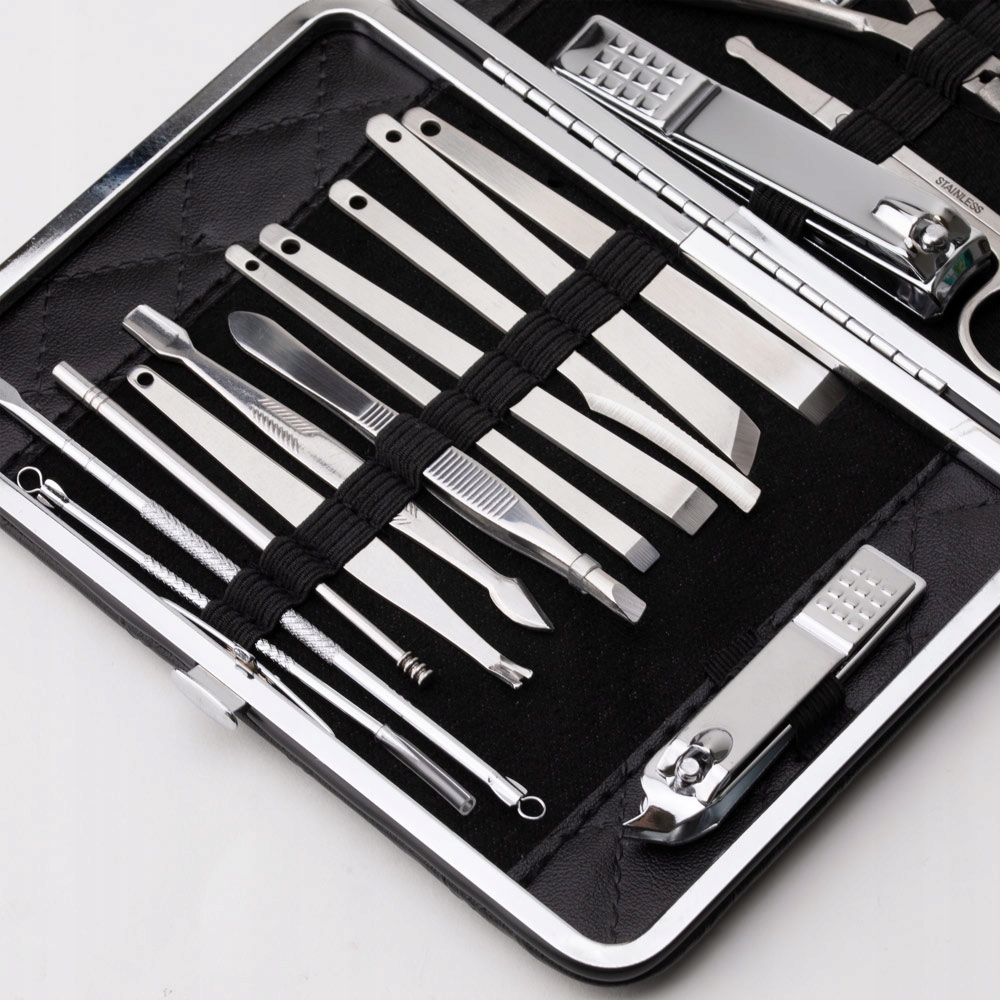Набір із 20 косметичних аксесуарів, який повноцінно подбає про ваші руки, ноги та обличчя. За допомогою цього набору ви вкоротите нігті, надасте їм форму, видалите сухі кутикули та підготуєте нігті до подальшого догляду.