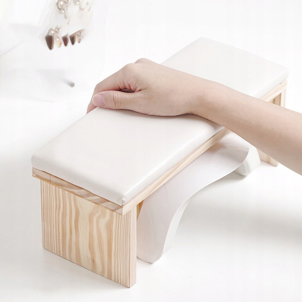 Під дерев’яною підставкою для долонь достатньо місця, на якому можна розмістити інструмент для фототерапії нігтів.