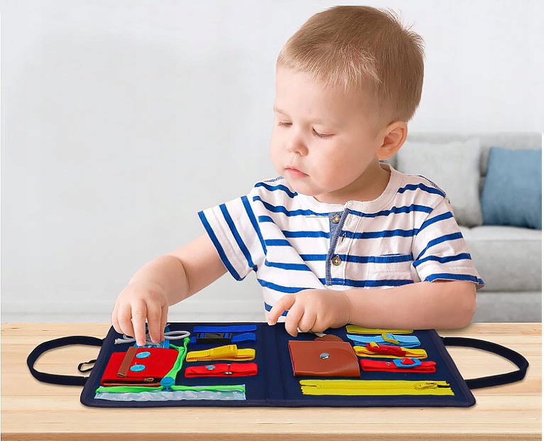 ➡️На дошці багато головоломок різної складності. Відкривання замків, пряжок і вирішення інших завдань вимагають великої концентрації та уваги, щоб зрозуміти, як працюють деякі елементи. Спочатку вони можуть здатися малюкові складними, але після деякого часу спроб і роздумів він зрозуміє, як працюють елементи!