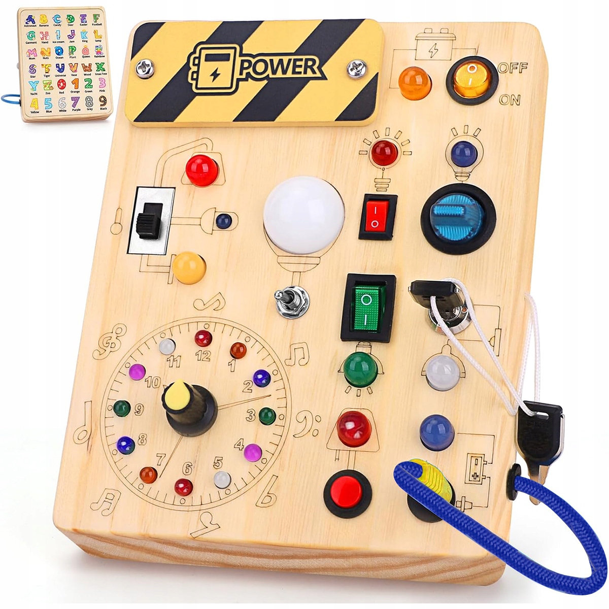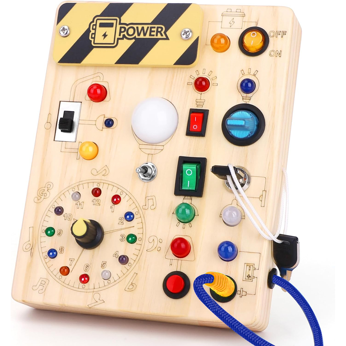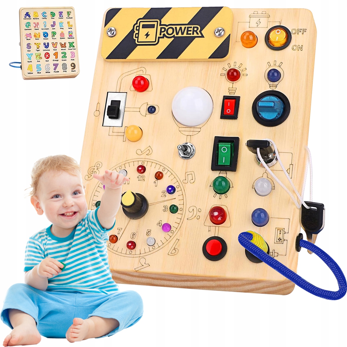 Іграшки Монтессорі від 1 року Навчальна дошка Навчальна дошка Іграшки від 2 років Дерев'яні іграшки з 10 вимикачами 23 світлодіодні лампочки Сенсорні іграшки Розвиваючі іграшки для хлопчиків і дівчаток 1, 2 і 3 роки