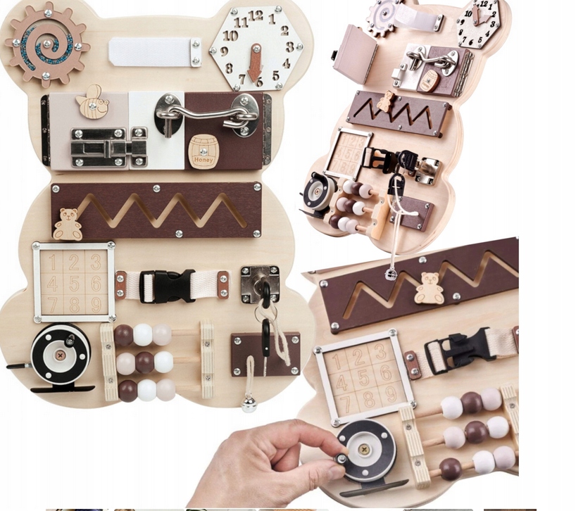 - Різні способи вдосконалення, вдосконалення та стимулювання спритності, координації та здатності вирішувати проблеми, такі як музична коробка, перемикання, перемикання, перемикання, засувка, затискач та взуття
