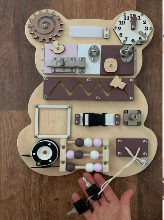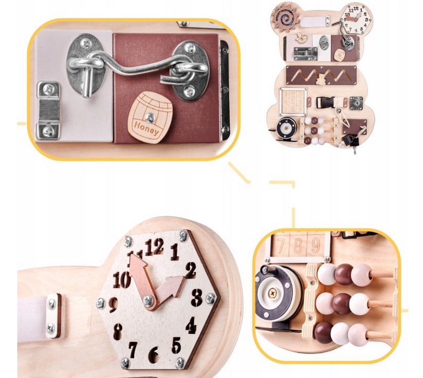 Thanks to the sensory board You can help the patient to experience daily activities, such as knowledge knowledge, concept of time, fastening the buckle, opening and closing the zipper, pressing the ringtone, shifting the stinging wheels, closing, counting, rapid